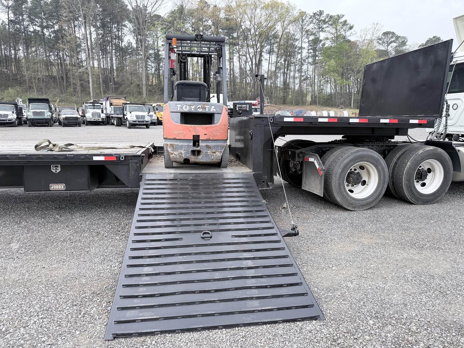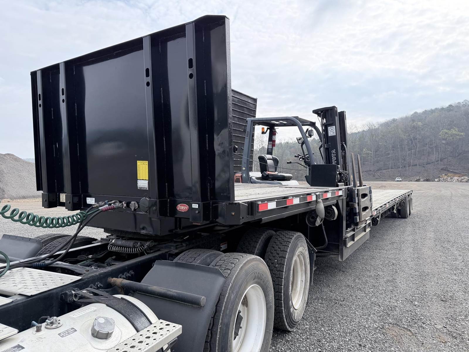 48ft Dorsey DD48, Includes Toyota diesel forklift, Air-ride suspension, Clean frame no rust, 32ft lower deck, 10ft upper deck, We deliver nationwide