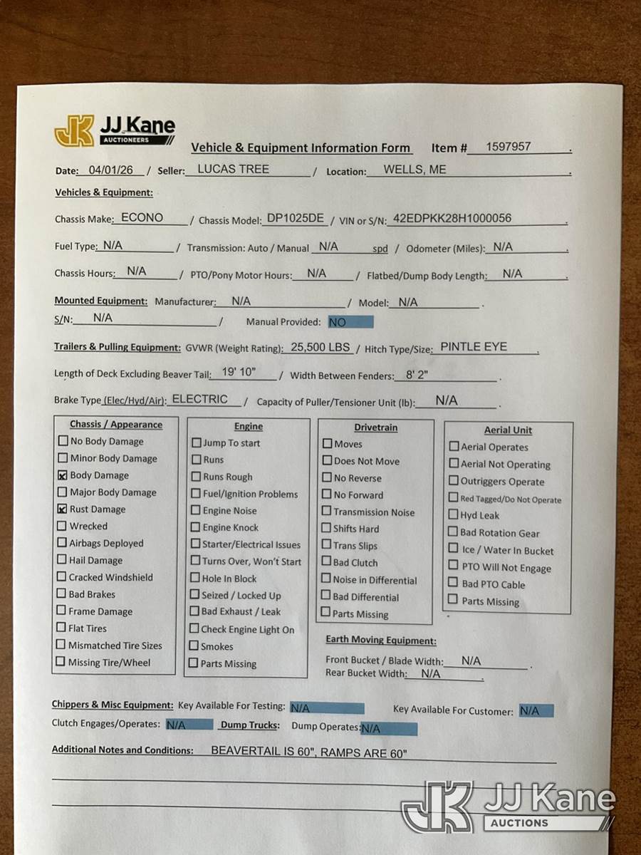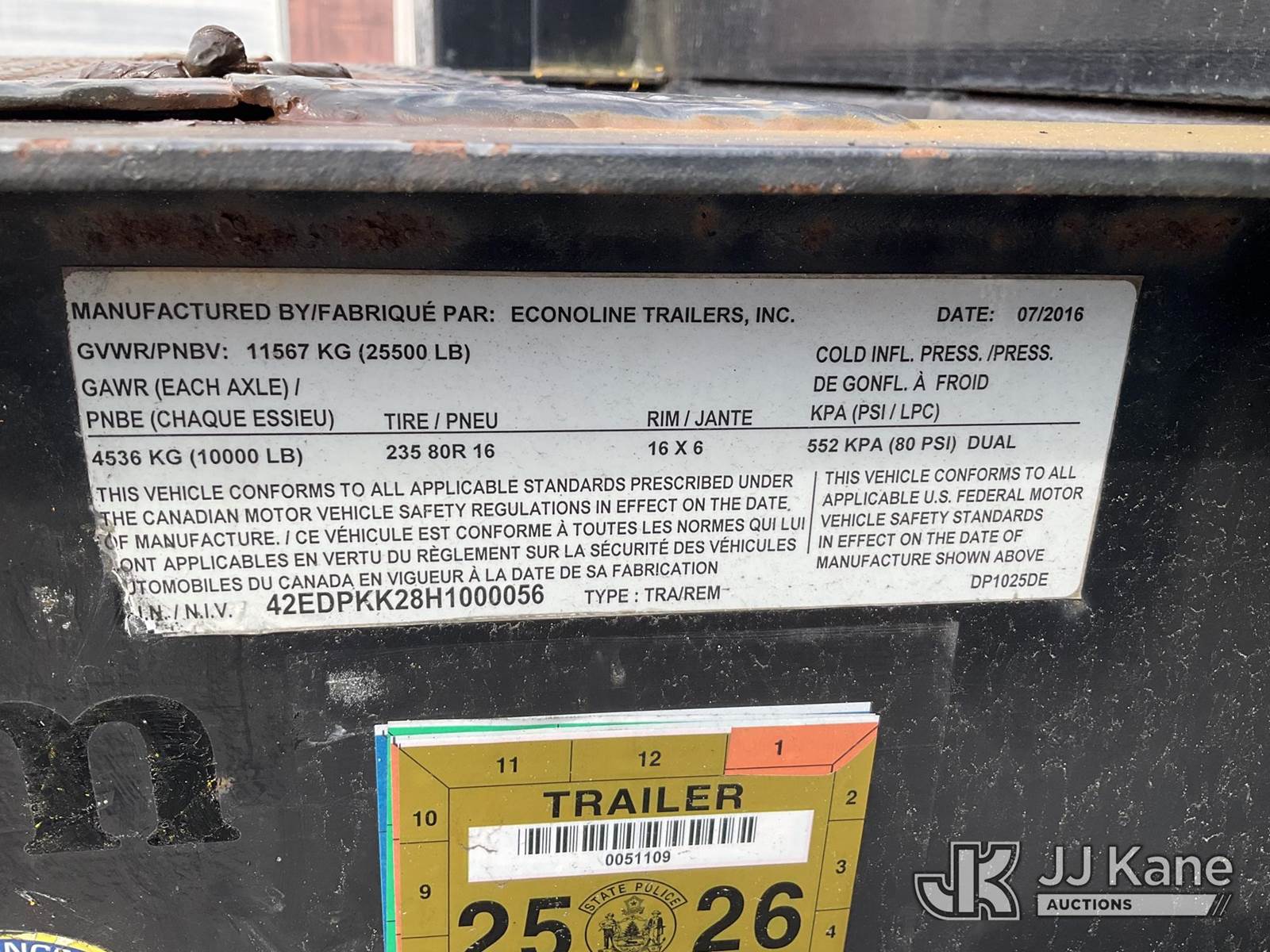2017 Econoline DP1025DE 10-Ton T/A Tagalong Equipment Trailer, with 20 ft Level Deck Over Wheels & Ramps, (Removal is by Appointment Only, Buyer MUST make a appointment prior to picking up, Buyer/Transporter Must have PAID IN FULL RELEASE. No onsite assistance available, Please Come prepared.) This is a Titled Item NOTE: This unit is being sold AS IS/WHERE IS via Timed Auction and is located in Wells, ME. Inspection & preview days for this unit are by appointment only; please contact us at contact@jjkane.com or 84-Go-JJKane for more details. (Buyer is responsible for removal. Assistance by consignor or JJ Kane Auctions is not assured.)