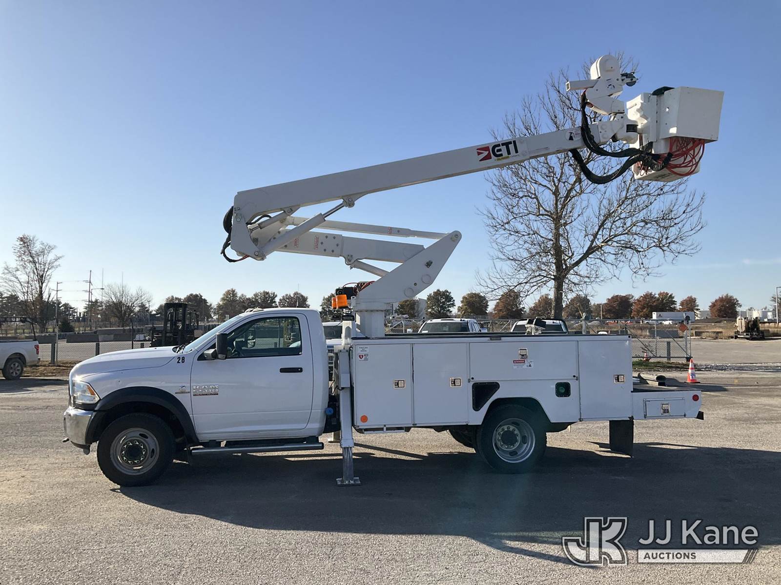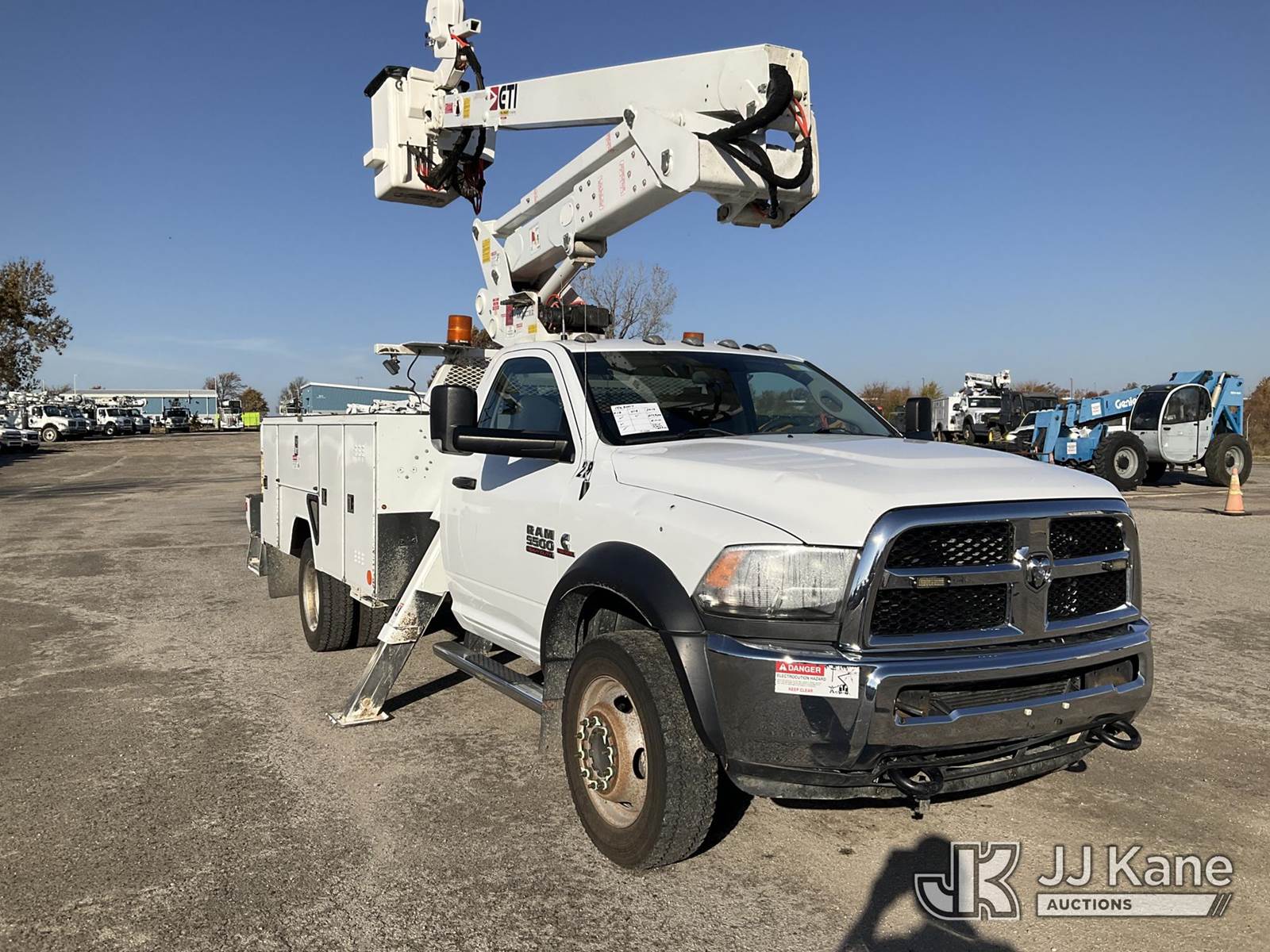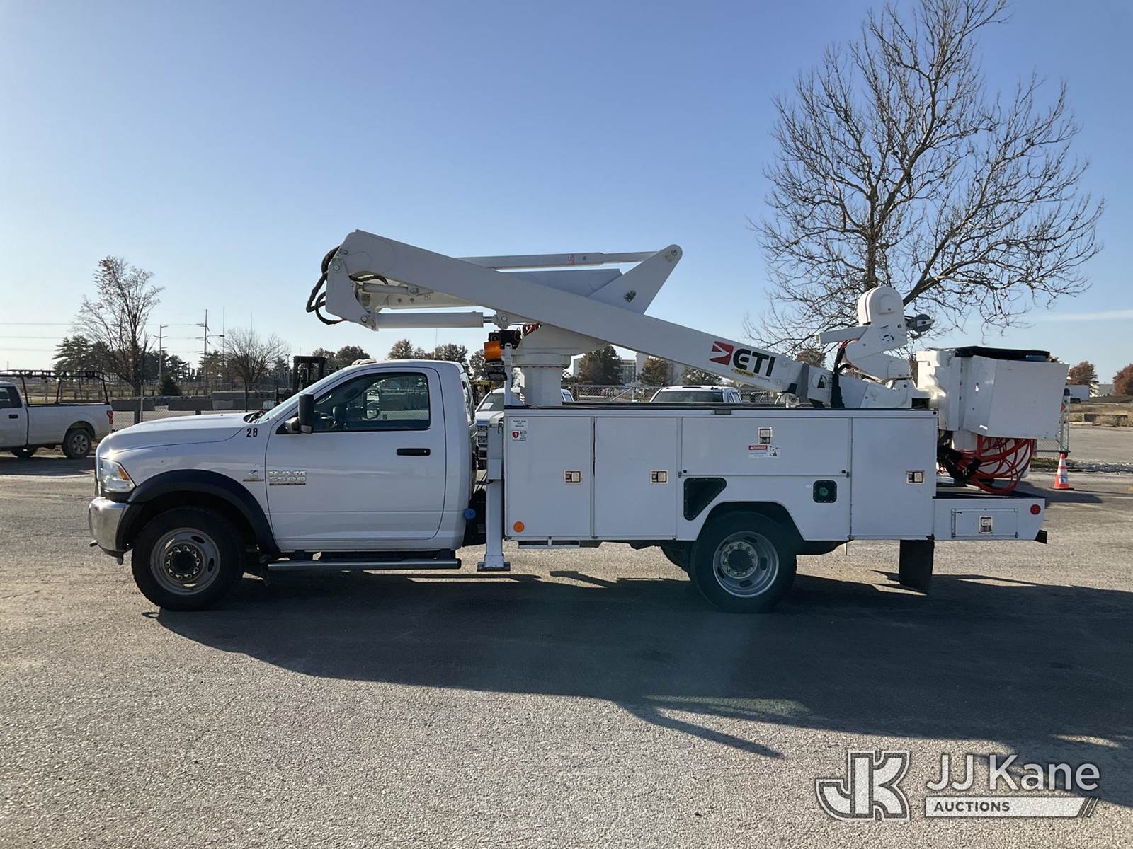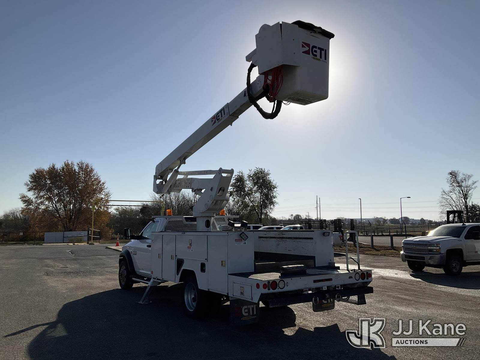 ETI ETCMH40IH, 45 ft, Articulating & Telescopic Material Handling Bucket Truck s/n 0717CM014384, with single-man bucket & 2 hyd outriggers, mounted behind cab on 2017 RAM 5500 Regular Cab 4WD DRW Service Truck, 6.7L L6 OHV 24V TURBO DIESEL Auto, A/C, (217,929 miles) (Runs, Moves, & Operates) (Check Engine Light On) This is a Titled Item NOTE: This unit is being sold AS IS/WHERE IS via Timed Auction and is located in Kansas City, MO. Inspection & preview days for this unit are the 2 business days prior to the first day of items closing for this auction, item is located at 962 Tel Aviv Ave Kansas City, MO 64153 and hours of operations are 8a-4p. For pre-sale questions, please contact Ricky McPherson @ (816) 610-2250. (Manuals provided in cab) (Buyer is responsible for removal. Assistance by consignor or JJ Kane Auctioneers is not assured.)