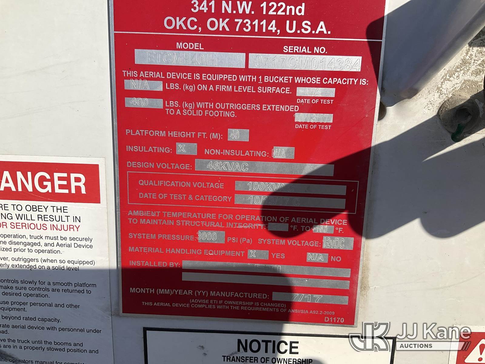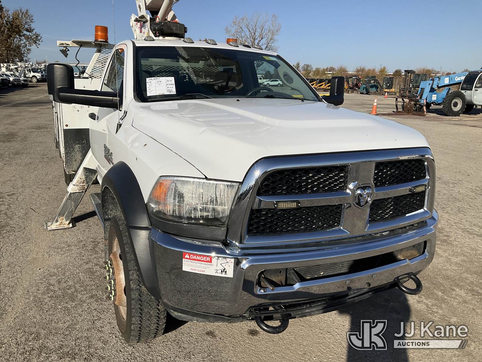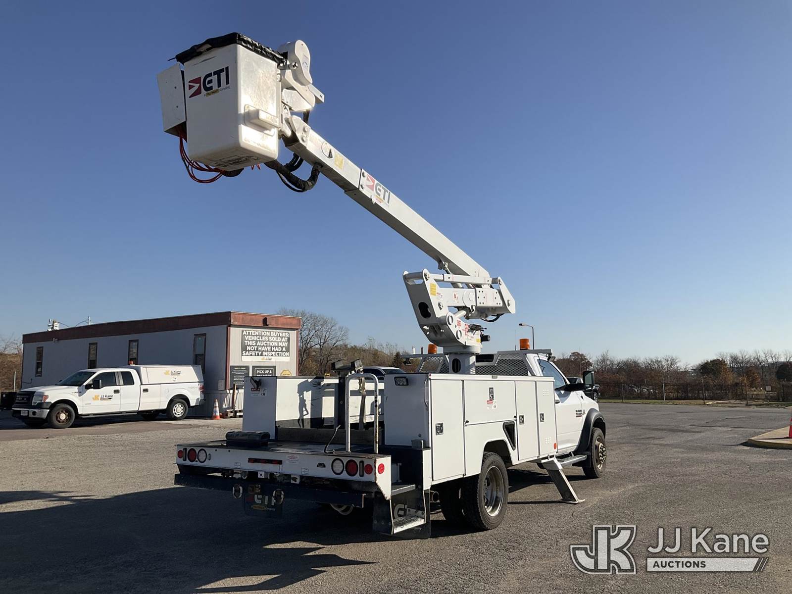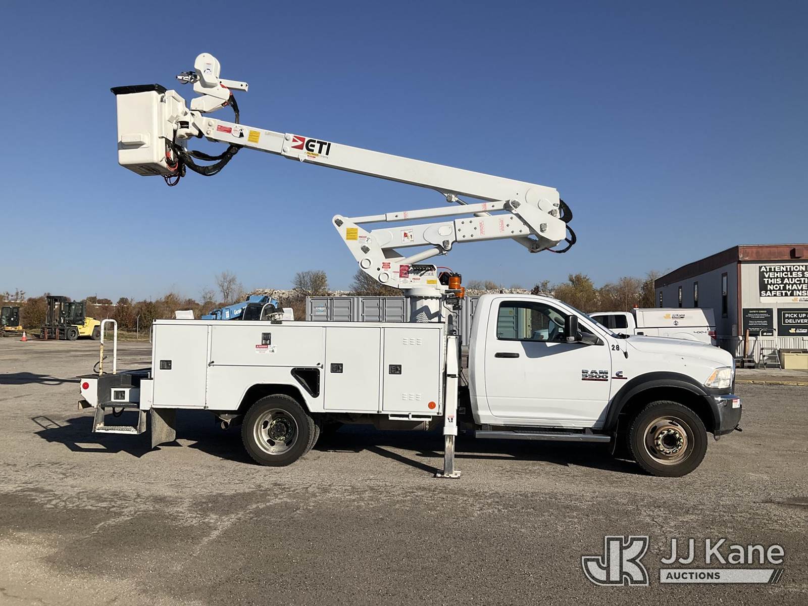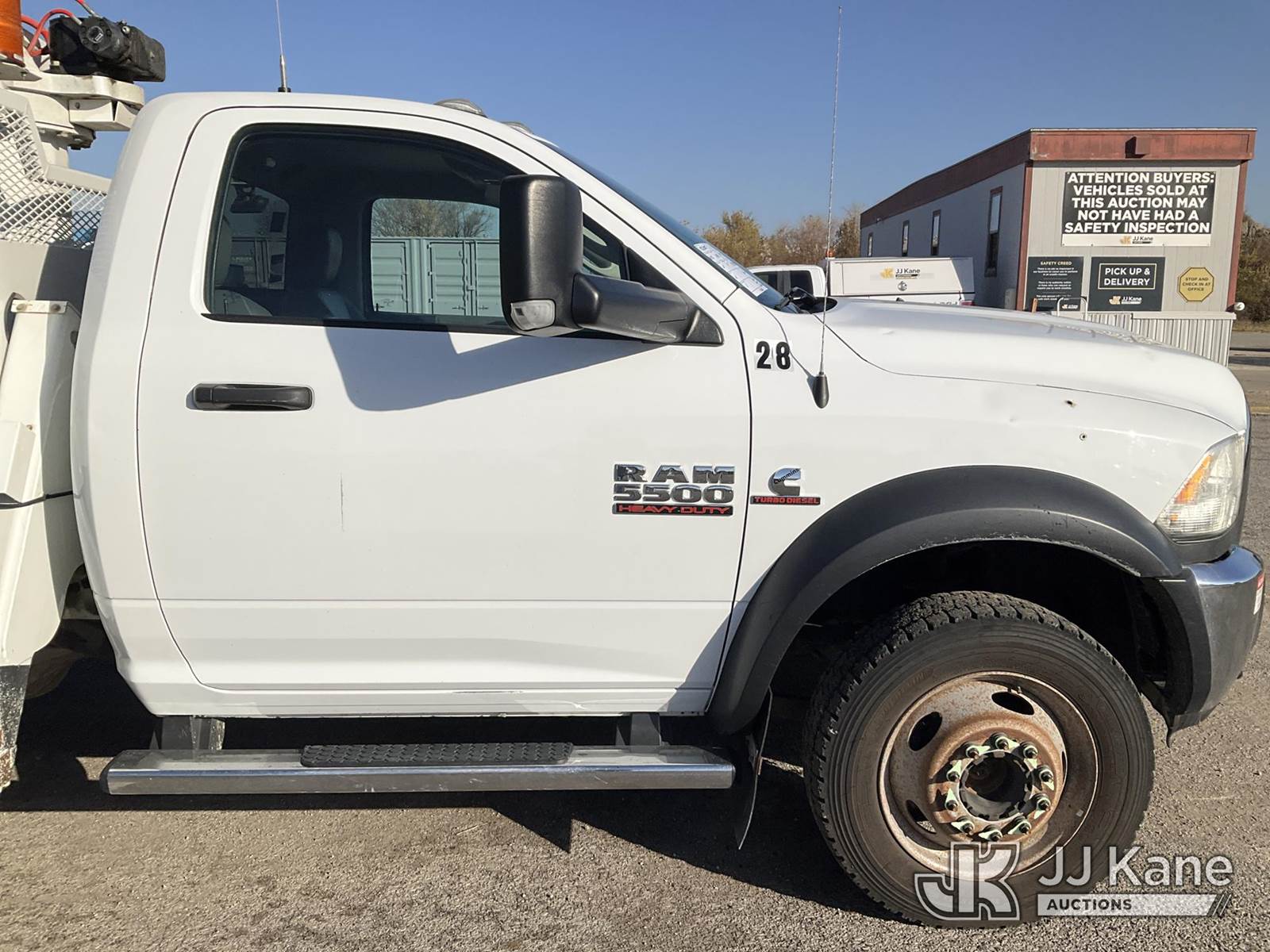 ETI ETCMH40IH, 45 ft, Articulating & Telescopic Material Handling Bucket Truck s/n 0717CM014384, with single-man bucket & 2 hyd outriggers, mounted behind cab on 2017 RAM 5500 Regular Cab 4WD DRW Service Truck, 6.7L L6 OHV 24V TURBO DIESEL Auto, A/C, (217,929 miles) (Runs, Moves, & Operates) (Check Engine Light On) This is a Titled Item NOTE: This unit is being sold AS IS/WHERE IS via Timed Auction and is located in Kansas City, MO. Inspection & preview days for this unit are the 2 business days prior to the first day of items closing for this auction, item is located at 962 Tel Aviv Ave Kansas City, MO 64153 and hours of operations are 8a-4p. For pre-sale questions, please contact Ricky McPherson @ (816) 610-2250. (Manuals provided in cab) (Buyer is responsible for removal. Assistance by consignor or JJ Kane Auctioneers is not assured.)