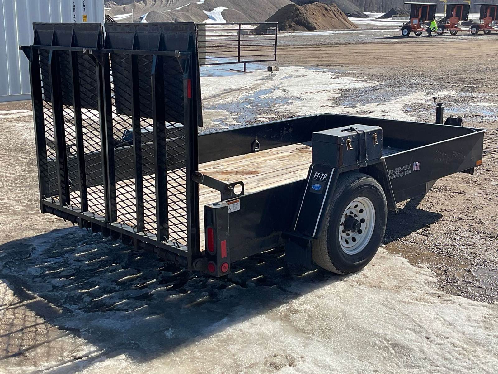 UTILITY TRAILER 6'6"X12', SINGLE AXLE, REAR RAMP, WOOD DECKING, TOOL BOX, PINTLE HITCH, ELECTRIC BRAKES, 235/80R16 TIRES, 7,000 LBS GVWR, *** GOVERNMENT OWNED 10% UNCAPPED PREMIUM***