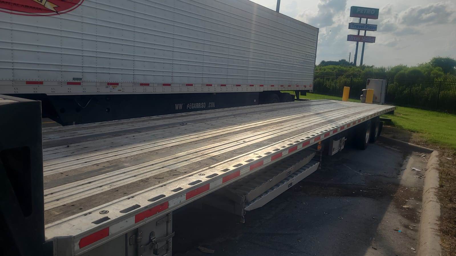 2017 Fontain step deck (LOW PRO) Trailer. Combo (Aluminum deck with steel chassis) Tires 50%, Breaks 90%. It has 3 toolboxes and a set of ramps. It also comes with a spare tire mounted on a rim. Ready for work. current on the inspection and on the Landstar system. PM for more info 10' top deck and 43' Bottom deck @ 34" Tall