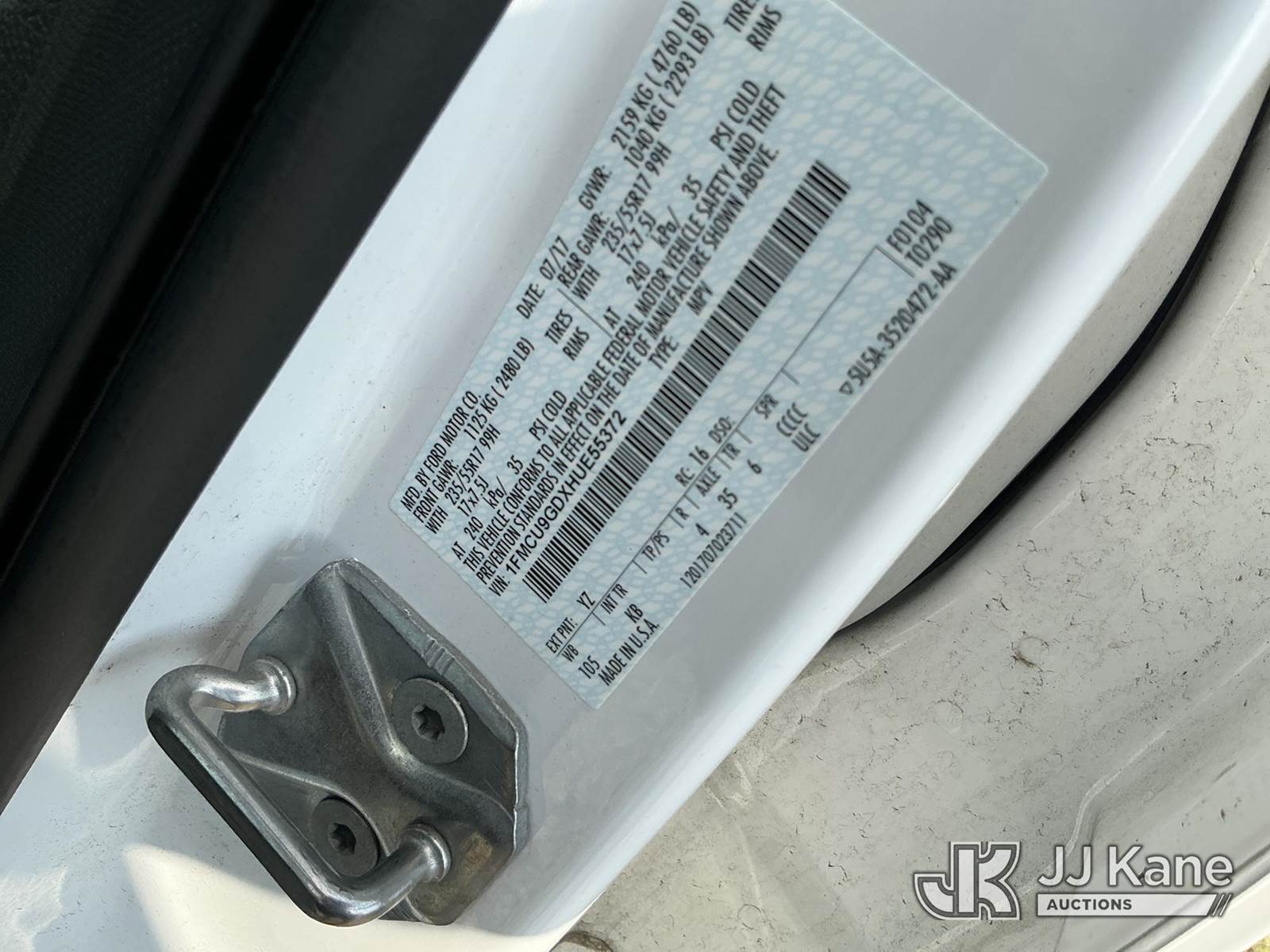 2017 Ford Escape 4x4 4-Door Sport Utility Vehicle, 4-cyl gas, Auto, A/C, (100,730 miles) (Wrecked Not Running Condition Unknown, Must Tow) (Buyer Must Load) This is a Titled Item NOTE: This unit is being sold AS IS/WHERE IS via Timed Auction and is located in Plymouth Meeting, PA. Inspection & preview days for this unit are the 2 business days prior to the first day of items closing for this auction, item is located at 1402 Conshohocken Rd Plymouth Meeting, PA 19462 and hours of operations are 8a-4p. For pre-sale questions, please contact Bruce Thomas at bruce.thomas.jr@jjkane.com. REMOVAL: 10 days after the sale, Wednesday thru Friday 10 days (Excluding Saturday & Sunday. Excluding Holidays, Yard is closed Weekends) All items must be removed by the 10th day or a storage fee of $25 per item /per day will be applied. (Buyer is responsible for removal. Assistance by consignor or JJ Kane Auctioneers is not assured.)