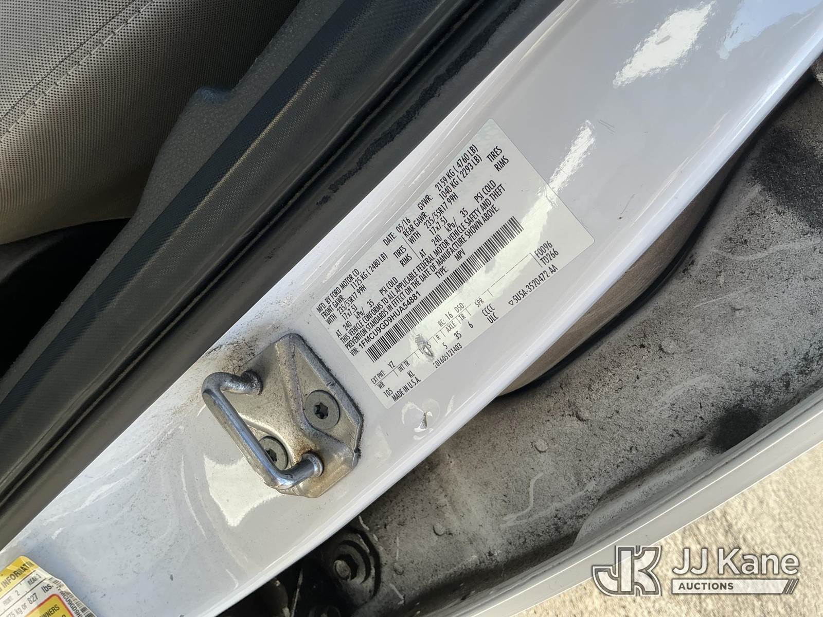 2017 Ford Escape 4x4 4-Door Sport Utility Vehicle, 4-cyl gas, Auto, A/C, (100,081 miles) (Runs & Moves, Traction Control Light On, Rear interior Door Panel Broken) This is a Titled Item NOTE: This unit is being sold AS IS/WHERE IS via Timed Auction and is located in Plymouth Meeting, PA. Inspection & preview days for this unit are the 2 business days prior to the first day of items closing for this auction, item is located at 1402 Conshohocken Rd Plymouth Meeting, PA 19462 and hours of operations are 8a-4p. For pre-sale questions, please contact Bruce Thomas @ (267) 887-0392 or bruce.thomas.jr@jjkane.com. (Buyer is responsible for removal. Assistance by consignor or JJ Kane Auctions is not assured.)