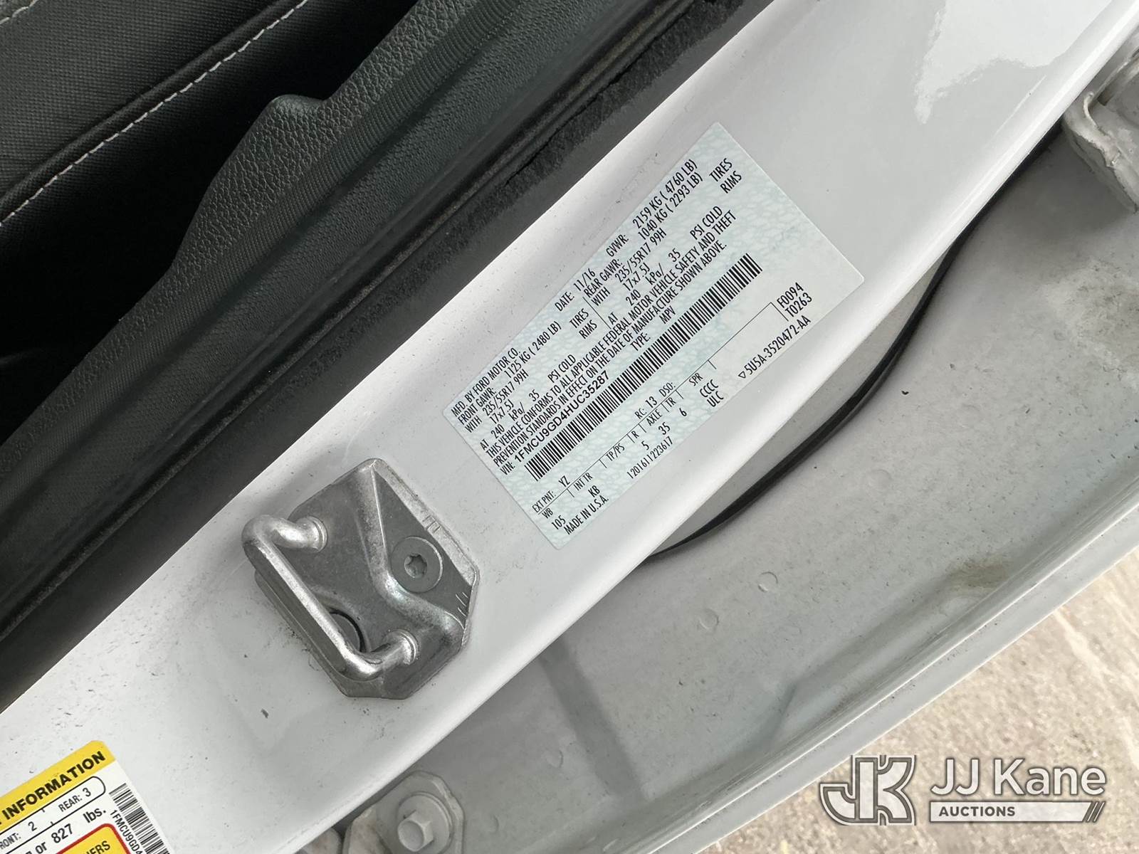 2017 Ford Escape 4x4 4-Door Sport Utility Vehicle, 4-cyl gas, Auto, A/C, (93,646 miles) (Runs & Moves) (Engine Tick, Dent In Rear Fender) This is a Titled Item NOTE: This unit is being sold AS IS/WHERE IS via Timed Auction and is located in Plymouth Meeting, PA. Inspection & preview days for this unit are the 2 business days prior to the first day of items closing for this auction, item is located at 1402 Conshohocken Rd Plymouth Meeting, PA 19462 and hours of operations are 8a-4p. For pre-sale questions, please contact Bruce Thomas @ (267) 887-0392 or bruce.thomas.jr@jjkane.com. (Buyer is responsible for removal. Assistance by consignor or JJ Kane Auctions is not assured.)