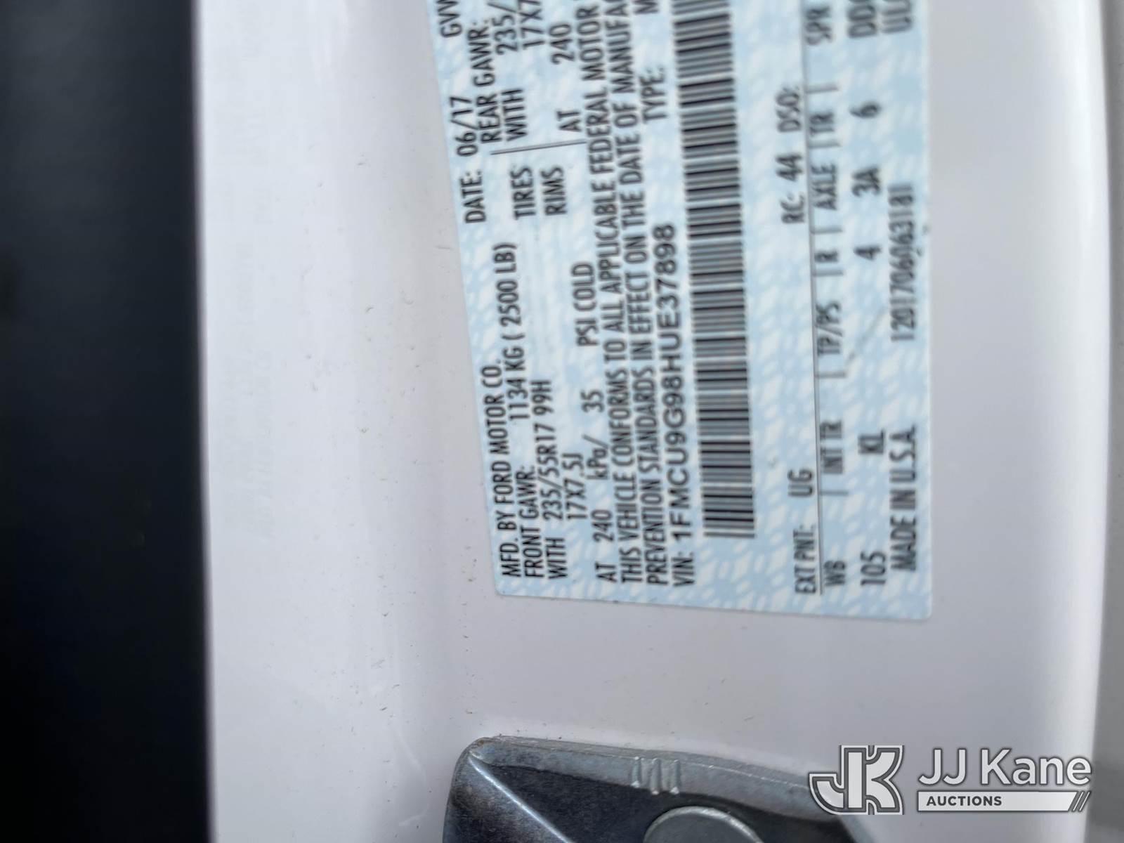 2017 Ford Escape SE 4WD 4-Door Sport Utility Vehicle, 2.0L L4 DOHC 16V gas, 6-Speed Automatic, A/C, (100,736 miles) (Runs & Moves) This is a Titled Item NOTE: This unit is being sold AS IS/WHERE IS via Timed Auction and is located in Louisville, OH. Inspection & preview days for this unit are the 2 business days prior to the first day of items closing for this auction, item is located at 3648 Beck Ave Louisville, OH 44641 and hours of operations are 8a-4p. For pre-sale questions, please contact Aaron Coleman @ (330) 495-4041 or aaron.coleman@jjkane.com. (Buyer is responsible for removal. Assistance by consignor or JJ Kane Auctions is not assured.)