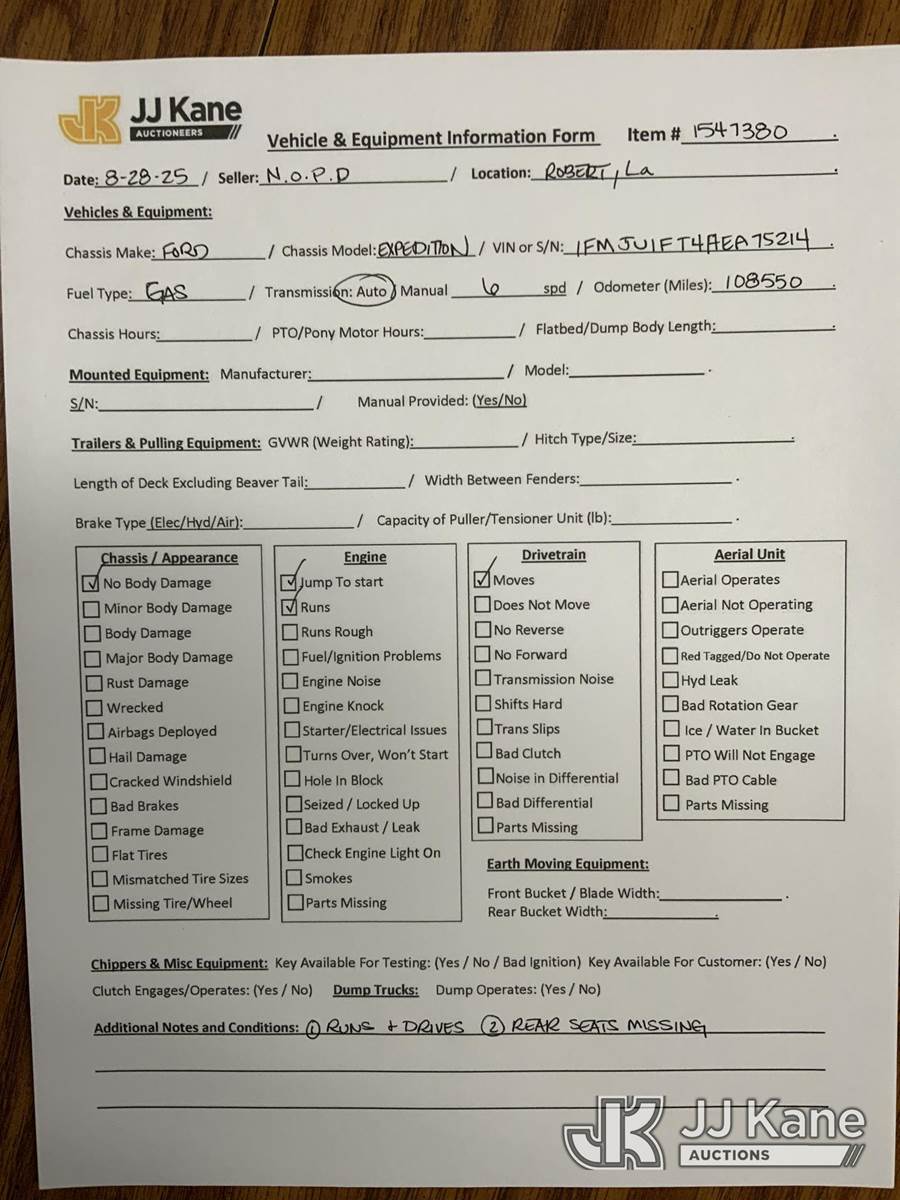 2017 Ford Expedition 4-Door Sport Utility Vehicle, 6-cyl gas, Auto, A/C, (108,550 miles) (Runs & Moves) (Jump To Start, Rear Seats Removed) This is a Titled Item NOTE: This unit is being sold AS IS/WHERE IS via Timed Auction and is located in Robert, LA. Call Jordan at (769) 231-2679 with questions. License # LA AB-154 (Buyer is responsible for removal. Assistance by consignor or JJ Kane Auctions is not assured.)