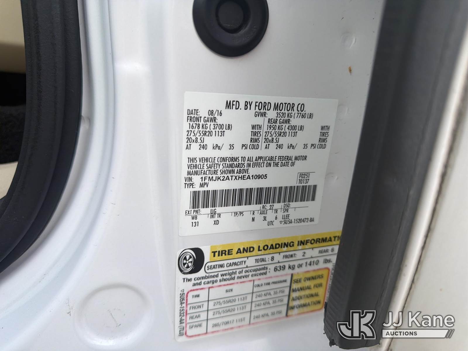 2017 Ford Expedition 4x4 4-Door Sport Utility Vehicle, 6-cyl gas, Auto, A/C, with 3rd row seating, (100,388 miles) (Runs & Moves) This is a Titled Item NOTE: This unit is being sold AS IS/WHERE IS via Timed Auction and is located in Chester, VA. Inspection & preview days for this unit are the 2 business days prior to the first day of items closing for this auction, item is located at 1840 Battery Dantzler Ct. Chester, VA 23836 and hours of operations are 7am-3pm. For pre-sale questions, please contact Doug Caton @ 804-807-4574. (Buyer is responsible for removal. Assistance by consignor or JJ Kane Auctions is not assured.)