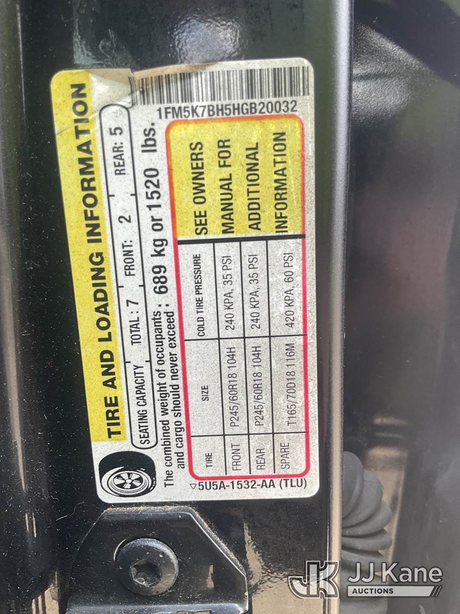 2017 Ford Explorer 4-Door Sport Utility Vehicle, 4-cyl gas, FWD, Auto, A/C, (136,284 miles) (Runs & Moves) (Check Engine Light On, Airbag Light On, Paint Damage) This is a Titled Item NOTE: This unit is being sold AS IS/WHERE IS via Timed Auction and is located in South Beloit, IL. Inspection & preview days for this unit are the 2 business days prior to the first day of items closing for this auction, item is located at 14354 Dearborn Ave South Beloit, IL and hours of operations are 8a-4p. For pre-sale questions, please contact Derek Eklund at (608) 904-0618 or (derek.eklund@jjkane.com). (Buyer is responsible for removal. Assistance by consignor or JJ Kane Auctions is not assured.)