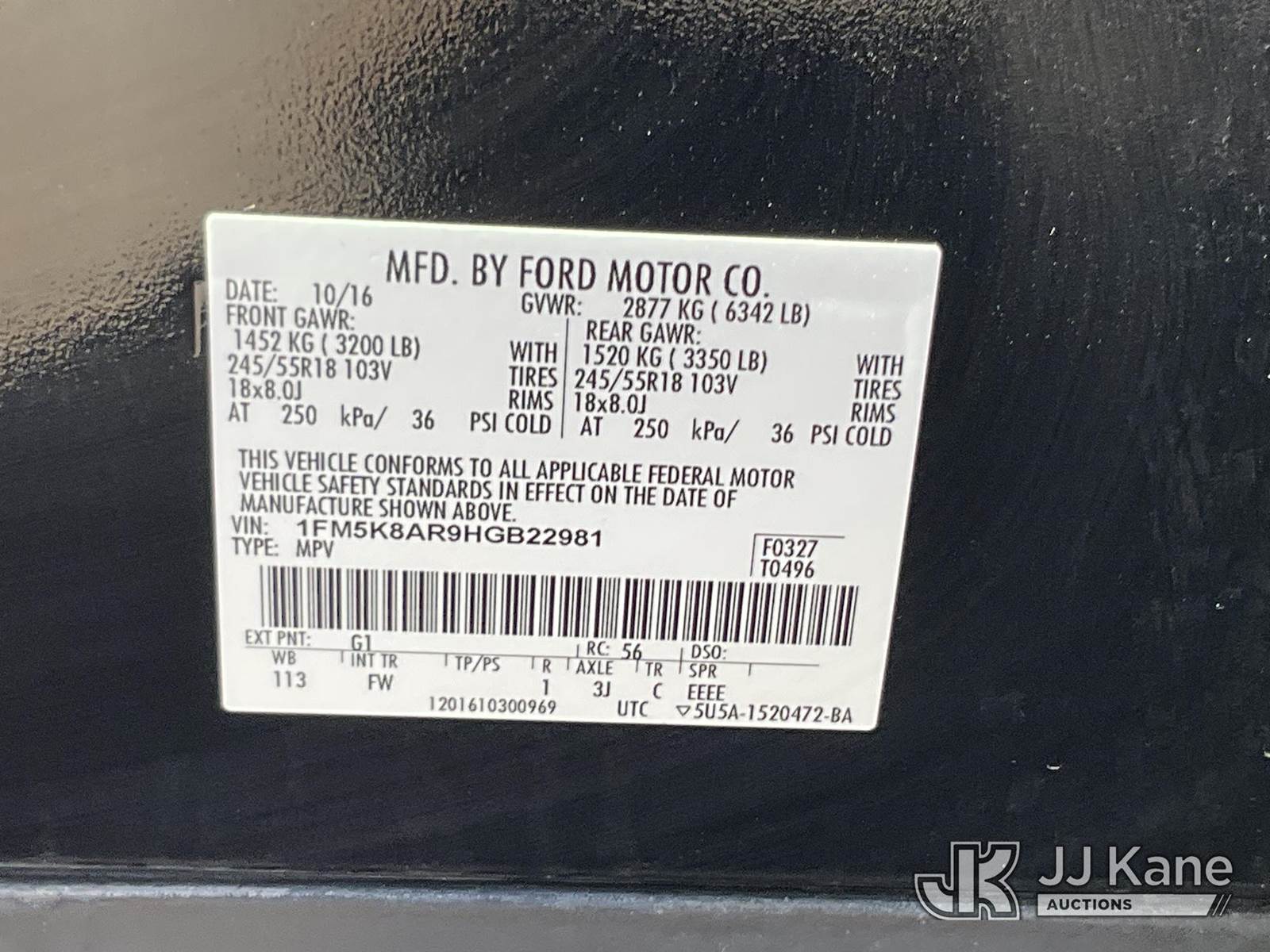 2017 Ford Explorer AWD Police Interceptor 4-Door Sport Utility Vehicle, 6-cyl gas, Auto, A/C, (097,337 miles) (Runs & Moves) This is a Titled Item NOTE: This unit is being sold AS IS/WHERE IS via Timed Auction and is located in Salt Lake City, UT. Inspection & preview days for this unit are the 2 business days prior to the first day of items closing for this auction, item is located at 2353 N Redwood Rd Salt Lake City, UT 84116 and hours of operations are 8a-4p. Titles executed exactly as bidder registered. Ensure your name and/or business name and address in JJ Kane and/or ProxiBid is correct before bidding. For pre-sale questions, please contact Office Staff @ (801) 519-0123. (Buyer is responsible for removal. Assistance by consignor or JJ Kane Auctioneers is not assured.)