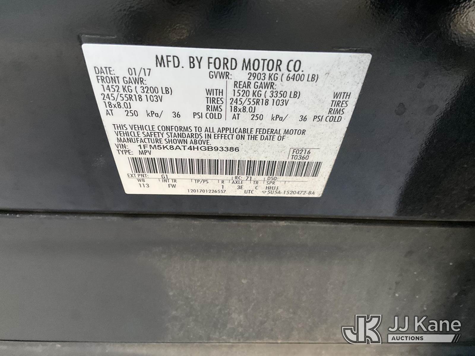 2017 Ford Explorer AWD Police Interceptor 4-Door Sport Utility Vehicle, s/n 1FM5K8AT4HGB93386, 6-cyl gas, 6-Speed Automatic, A/C, (106,099 miles) (Runs & Moves) (Engine Light On, Airbag Light On, Traction Control Light On, ABS Light On, Missing Horn, Interior Stripped Of Parts, Open Recall, Remedy Not Yet Available) (Bidding Restricted to Licensed Vehicle Dealers Only), This is a Titled Item NOTE: This unit is being sold AS IS/WHERE IS via Timed Auction and is located in Jurupa Valley, CA. Inspection & preview days for this unit are the 2 business days prior to the first day of items closing for this auction, item is located at 4510 Muth Way Jurupa Valley, CA 92509 and hours of operations are 8a-4p. For pre-sale questions, please contact please contact Office Staff @ (310) 353-7140. Dealer License Number 45696. (Buyer is responsible for removal. Assistance by consignor or JJ Kane Auctions is not assured.)