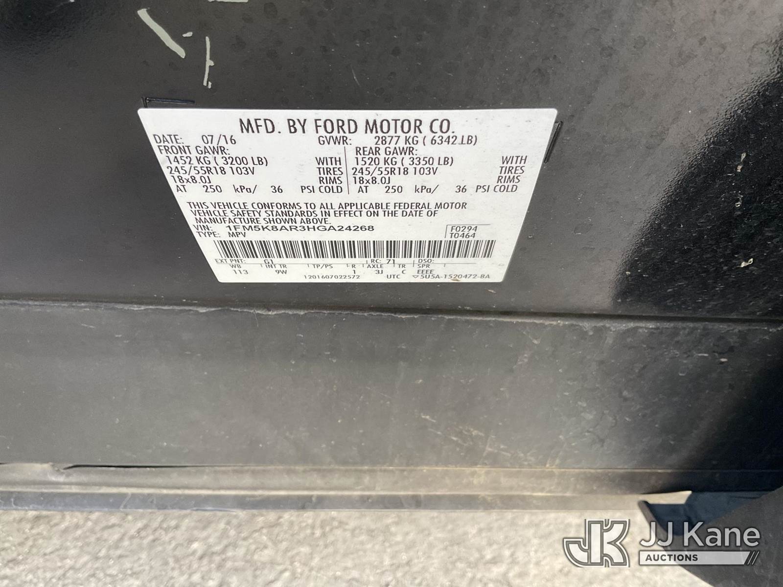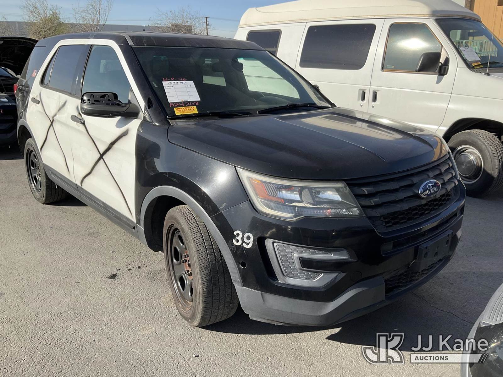 2017 Ford Explorer AWD Police Interceptor 4-Door Sport Utility Vehicle, 6-cyl gas, 6-Speed Automatic, A/C, (108,829 miles) (Runs & Moves) (Engine Light On, Interior Stripped Of Parts, Open Recall, Remedy Not Yet Available, Vehicle is subject to an open NHTSA safety recall related to IN SOME OF THE AFFECTED VEHICLES, IT MAY BE POSSIBLE THAT SOME OF THE EXTERIOR A-PILLAR APPLIQUE TRIM CLIP ATTACHMENTS ARE NOT PROPERLY ENGAGED DUE TO IMPROPER ASSEMBLY OR REPAIR. IF THIS OCCURS, THE A-PILLAR APPLIQUE TRIM, WHICH BORDERS THE RIGHT AND LEFT SIDE OF THE WINDSHIELD, MAY BE LOOSE, MISSING OR BECOME DETACHED., but a remedy for this recall does not appear to be available. Dealer is not authorized to perform the recall repair. Periodically contact the manufacturer or check the VIN on the NHTSA website at www.safercar.govivin to determine whether a remedy for the recall is available. As soon as a remedy is available, arrange to have the recall remedied with a dealer from that make of car to make such repair. Open Recall, Remedy Not Yet Available, Vehicle is subject to an open NHTSA safety recall related to IN YOUR VEHICLE, THE DRIVER AND FRONT PASSENGER DOOR B-PILLAR TRIM APPLIQUES MAY BECOME PARTIALLY OR FULLY DETACHED. YOU MAY VISUALLY NOTICE THE B-PILLAR TRIM APPLIQUES SEPARATING FROM THE TOP OF THE FRONT DOORS WHEN ENTERING EXITING THE VEHICLE AND OR HEAR WIND NOISE AND RATTLING NOISE AS YOU DRIVE., but a remedy for this recall does not appear to be available. Dealer is not authorized to perform the recall repair. Periodically contact the manufacturer or check the VIN on the NHTSA website at www.safercar.govivin to determine whether a remedy for the recall is available. As soon as a remedy is available, arrange to have the recall remedied with a dealer from that make of car to make such repair.) (Bidding Restricted to Licensed Vehicle Dealers Only), This is a Titled Item NOTE: This unit is being sold AS IS/WHERE IS via Timed Auction and is located in Jurupa Valley, CA. Inspection & preview days for this unit are the 2 business days prior to the first day of items closing for this auction, item is located at 4510 Muth Way Jurupa Valley, CA 92509 and hours of operations are 8a-4p. For pre-sale questions, please contact please contact Office Staff @ (310) 353-7140. Dealer License Number 45696. (Buyer is responsible for removal. Assistance by consignor or JJ Kane Auctions is not assured.)