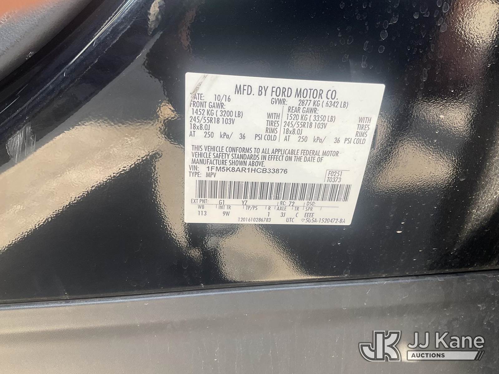 2017 Ford Explorer Police 4WD 4-Door Sport Utility Vehicle, s/n 1FM5K8AR1HGB33876, 3.7L V6 DOHC 24V 6-Speed Automatic, Gas, A/C, (118,266 miles) Open Recall, Remedy Not Yet Available, Vehicle is subject to an open NHTSA safety recall related to IN SOME OF THE AFFECTED VEHICLES, IT MAY BE POSSIBLE THAT SOME OF THE EXTERIOR A-PILLAR APPLIQUE TRIM CLIP ATTACHMENTS ARE NOT PROPERLY ENGAGED DUE TO IMPROPER ASSEMBLY OR REPAIR. IF THIS OCCURS, THE A-PILLAR APPLIQUE TRIM, WHICH BORDERS THE RIGHT AND LEFT SIDE OF THE WINDSHIELD, MAY BE LOOSE, MISSING OR BECOME DETACHED., but a remedy for this recall does not appear to be available. Dealer is not authorized to perform the recall repair. Periodically contact the manufacturer or check the VIN on the NHTSA website at www.safercar.govivin to determine whether a remedy for the recall is available. As soon as a remedy is available, arrange to have the recall remedied with a dealer from that make of car to make such repair. (Runs & Moves) (Bidding Restricted to Licensed Vehicle Dealers Only), This is a Titled Item NOTE: This unit is being sold AS IS/WHERE IS via Timed Auction and is located in Jurupa Valley, CA. Inspection & preview days for this unit are the 2 business days prior to the first day of items closing for this auction, item is located at 4510 Muth Way Jurupa Valley, CA 92509 and hours of operations are 8a-4p. For pre-sale questions, please contact please contact Office Staff @ (310) 353-7140. Dealer License Number 45696. (Buyer is responsible for removal. Assistance by consignor or JJ Kane Auctioneers is not assured.)