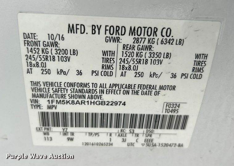 VIN: 1FM5K8AR1HGB22974