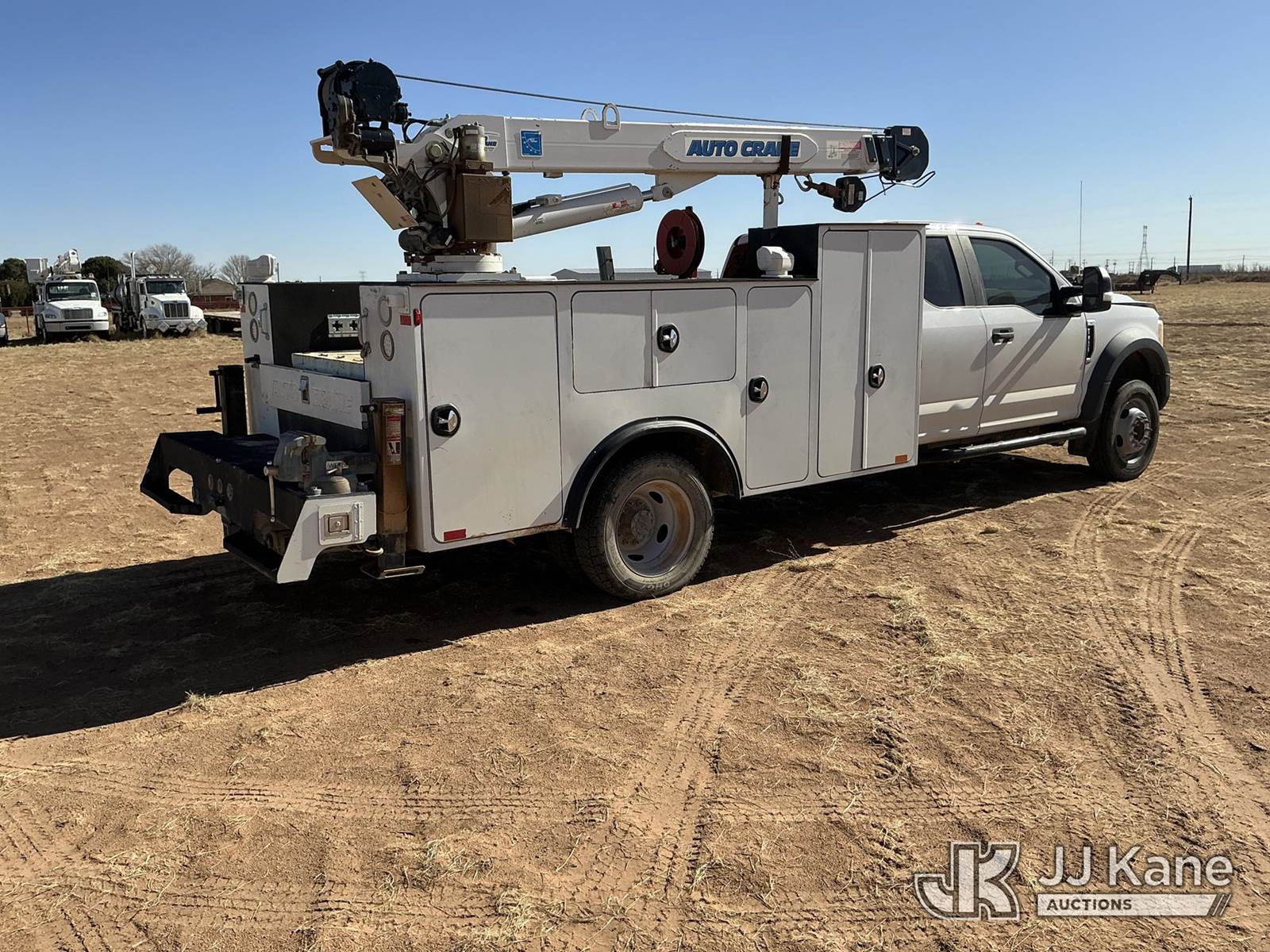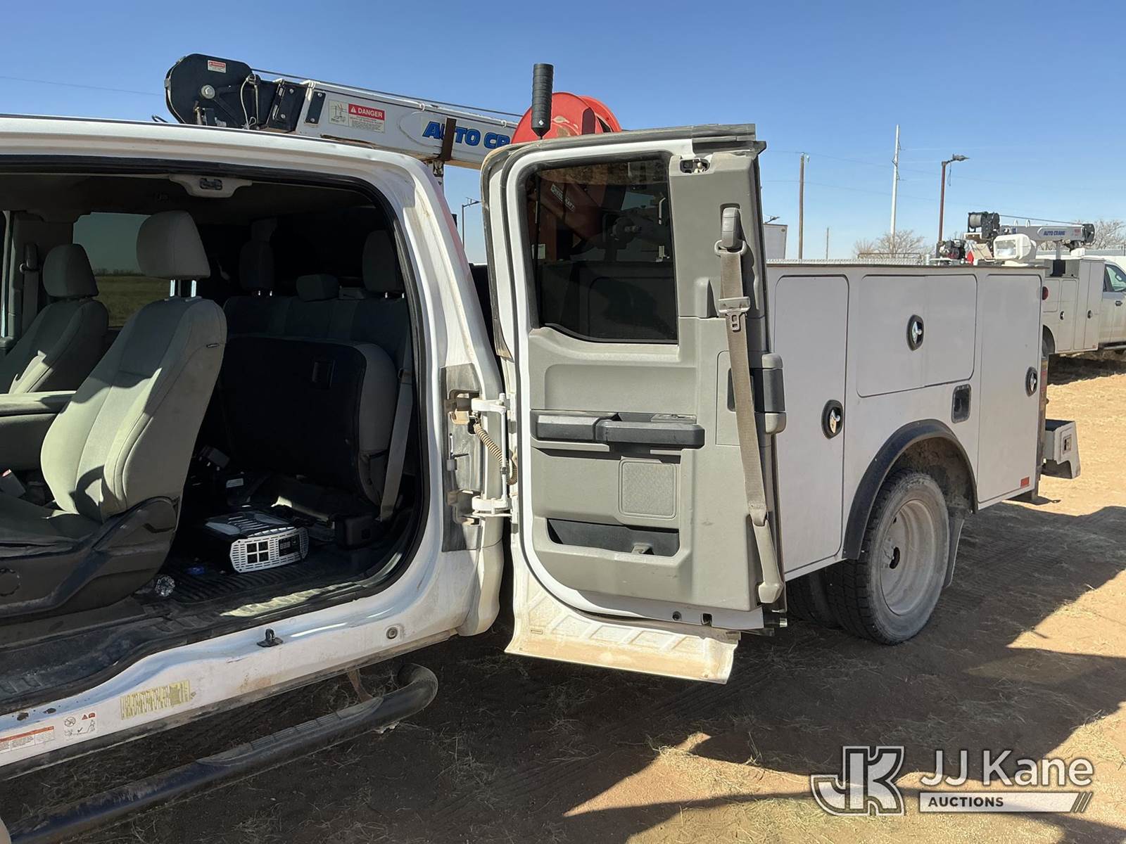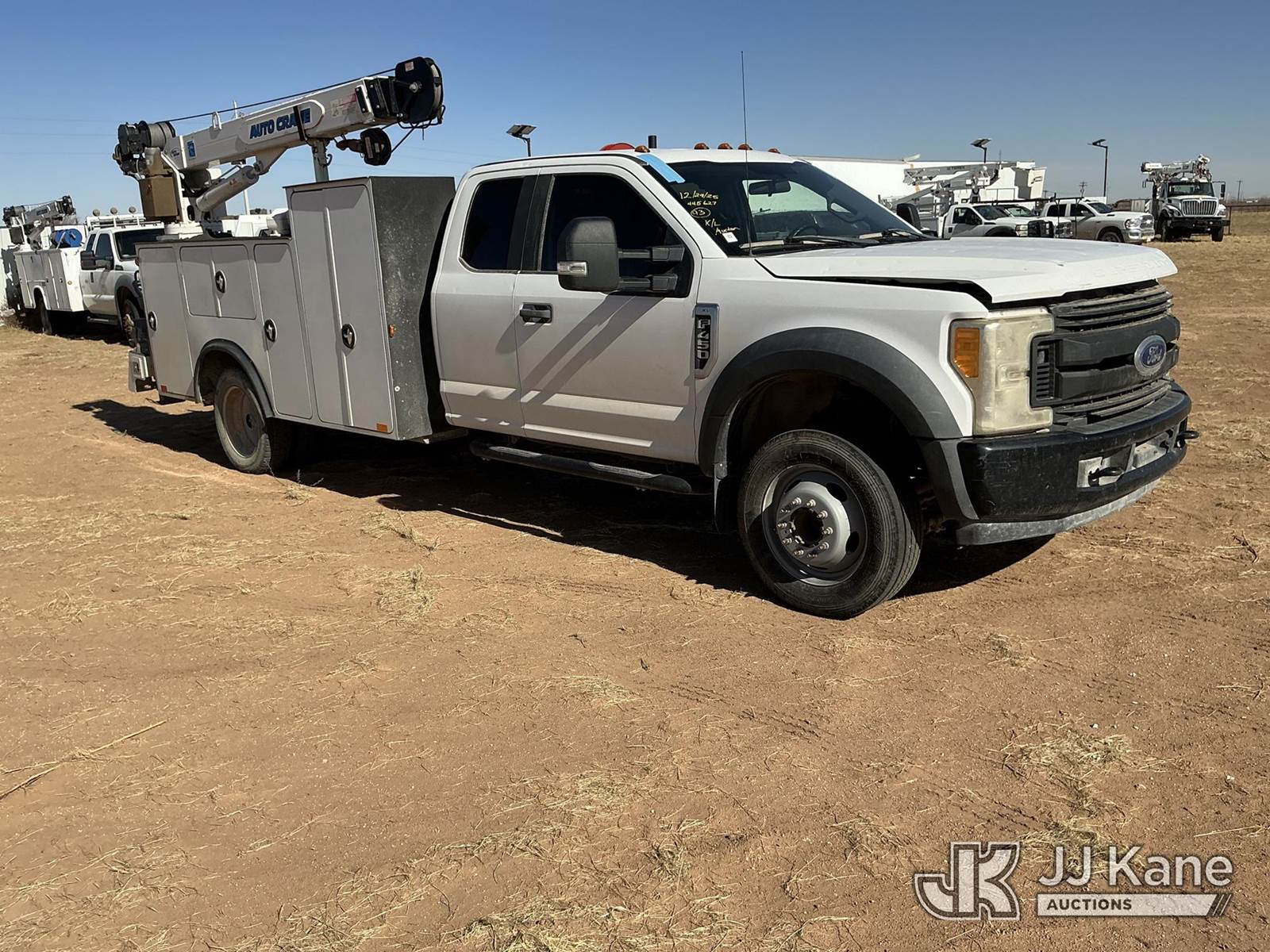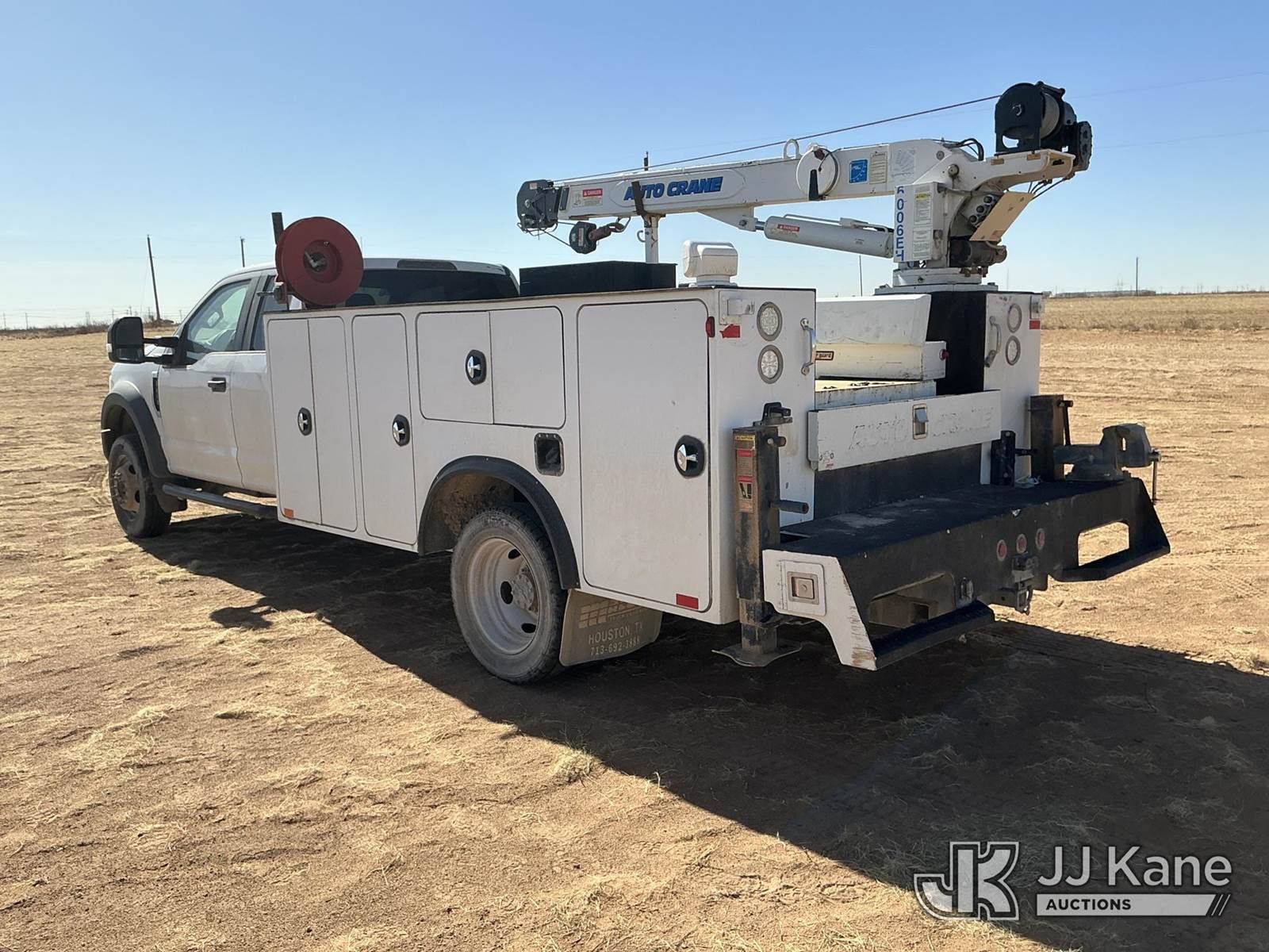2017 Ford F-450 SD Extended-Cab Mechanics Service Truck, 10-cyl gas, Auto, A/C, with Auto Crane 6006EH material crane, Cobra inverter, (191,831 miles) (Runs & Moves) (Crane Does Not Operate Condition Unknown, Check Engine Light On, Body Damage To Hood Hail Dents, Front Grill Is Cracked, Scratches & Dents All Around) This is a Titled Item NOTE: This unit is being sold AS IS/WHERE IS via Timed Auction and is located in Stanton, TX. For more information & removal arrangements please contact Aeon Downey @ (915) 341-6825. (Missing manuals, See Auction Company for Manufacturers Information to obtain manuals) (Buyer is responsible for removal. Assistance by consignor or JJ Kane Auctions is not assured.)