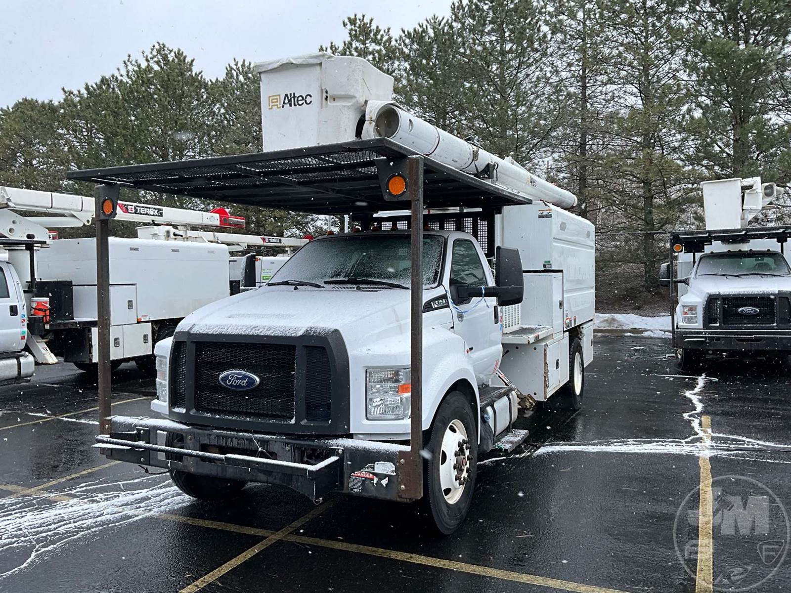 ALTEC LR756 OVER-CENTER BUCKET TRUCK, FRONT MOUNT BOOM, BOOM SN 0517FF6582, 6.7L POWERSTROKE DIESEL, SINGLE AXLE, AUTOMATIC, SPRING SUSPENSION, 194 " WB, WORK HEIGHT 61, CHIPPER DUMP BODY, SINGLE MAN BUCKET, BOOM CAPACITY 400, 2 HYDRAULIC OUTRIGGERS, 25999 GVWR, HOUR METER READS: 3833, ODOMETER READS: 39089