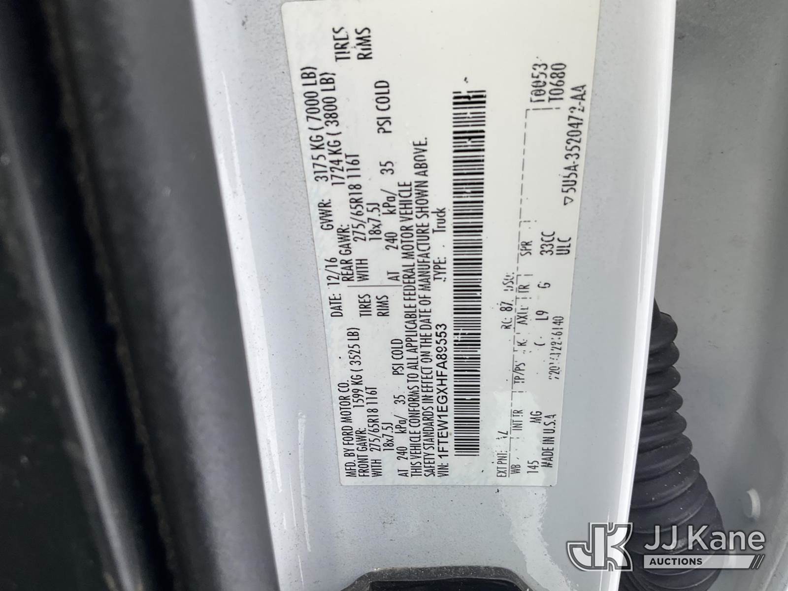 2017 Ford F150 4x4 Crew-Cab Pickup Truck, 6-cyl gas, Auto, A/C, (273,794 miles) (Runs & Moves) This is a Titled Item NOTE: This unit is being sold AS IS/WHERE IS via Timed Auction and is located in Rome, NY. Inspection & preview days for this unit are the 2 business days prior to the first day of items closing for this auction, item is located at 5835 Success Dr Rome, NY 13440 and hours of operations are 8a-4p. For pre-sale questions, please contact Ryan Jackson @ (315) 749-3790 or Ryan.Jackson@jjkane.com. (Buyer is responsible for removal. Assistance by consignor or JJ Kane Auctions is not assured.)