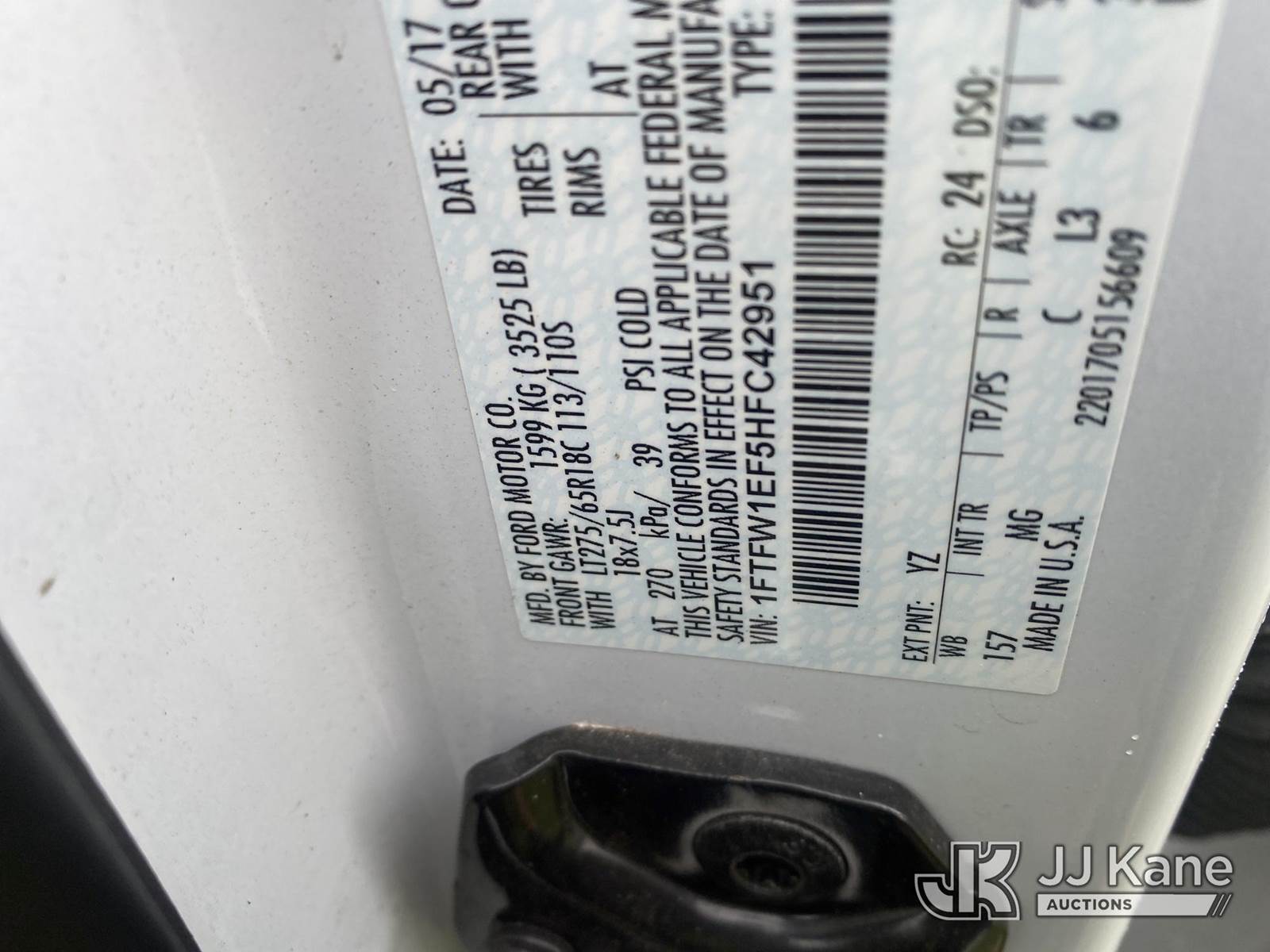 2017 Ford F150 4x4 Crew-Cab Pickup Truck, 5.0L V8 gas, 6-Speed Automatic, A/C, with bed cover, (201,267 miles) (Wrecked) (Runs & Moves) (Check Engine Light On, Body Damage) This is a Titled Item NOTE: This unit is being sold AS IS/WHERE IS via Timed Auction and is located in Florence, SC. Inspection & preview days for this unit are by appointment only; please contact us at contact@jjkane.com or 84-Go-JJKane for more details. (Buyer is responsible for removal. Assistance by consignor or JJ Kane Auctions is not assured.)