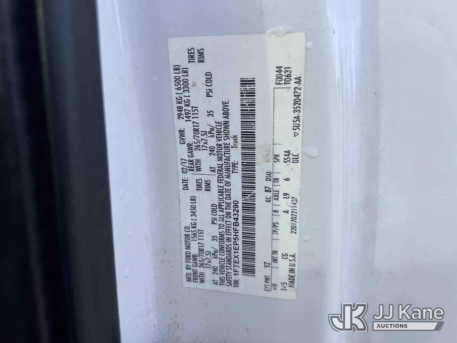 2017 Ford F150 4x4 Extended-Cab Pickup Truck, 6-cyl gas, Auto, A/C, with bed cover, (219,725 miles) (Runs & Moves) (Tailgate Won't Open, Body/Paint Damage) This is a Titled Item NOTE: This unit is being sold AS IS/WHERE IS via Timed Auction and is located in China Grove, NC. Inspection & preview days for this unit are the 2 business days prior to the first day of items closing for this auction, item is located at 820 E NC Hwy 152 China Grove, NC 28023 and hours of operations are 8a-4p. For pre-sale questions, please contact Office Staff @ (704) 674-1113. (Buyer is responsible for removal. Assistance by consignor or JJ Kane Auctioneers is not assured.)