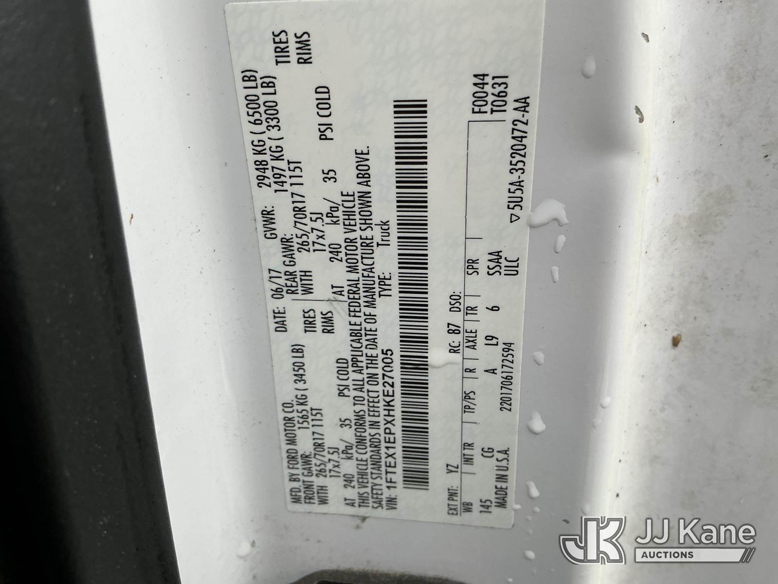 2017 Ford F150 4x4 Extended-Cab Pickup Truck, 6-cyl gas, Auto, A/C, (284,980 miles) (Runs & Moves) (Check Engine Light On, Lights Stay On, Battery Disconnected, Tailgate Broken, Body Damage) (Seller States: Needs Body Control Module) (Bidding Restricted to Licensed Vehicle Dealers and Out of State Buyers Only), This is a Titled Item NOTE: This unit is being sold AS IS/WHERE IS via Timed Auction and is located in China Grove, NC. Inspection & preview days for this unit are the 2 business days prior to the first day of items closing for this auction, item is located at 820 E NC Hwy 152 China Grove, NC 28023 and hours of operations are 8a-4p. For pre-sale questions, please contact Office Staff @ (704) 674-1113. (Buyer is responsible for removal. Assistance by consignor or JJ Kane Auctions is not assured.)
