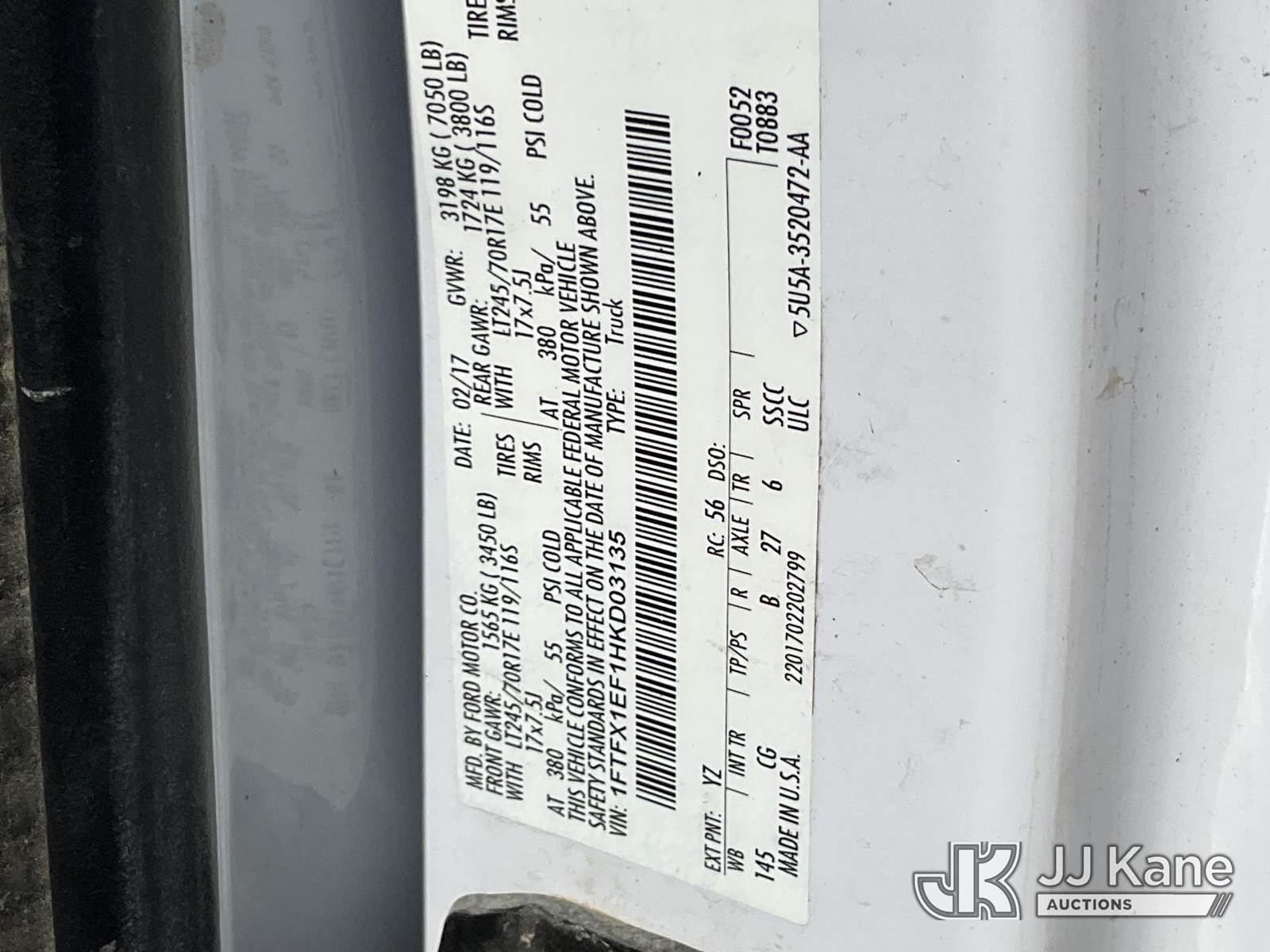 2017 Ford F150 4x4 Extended-Cab Pickup Truck, 8-cyl gas, 4WD, Auto, A/C, (124,815 miles) (Runs & Moves) This is a Titled Item NOTE: This unit is being sold AS IS/WHERE IS via Timed Auction and is located in Salt Lake City, UT. Inspection & preview days for this unit are the 2 business days prior to the first day of items closing for this auction, item is located at 2353 N Redwood Rd Salt Lake City, UT 84116 and hours of operations are 8a-4p. Titles executed exactly as bidder registered. Ensure your name and/or business name and address in JJ Kane and/or ProxiBid is correct before bidding. For pre-sale questions, please contact Office Staff @ (801) 519-0123. (Buyer is responsible for removal. Assistance by consignor or JJ Kane Auctions is not assured.)