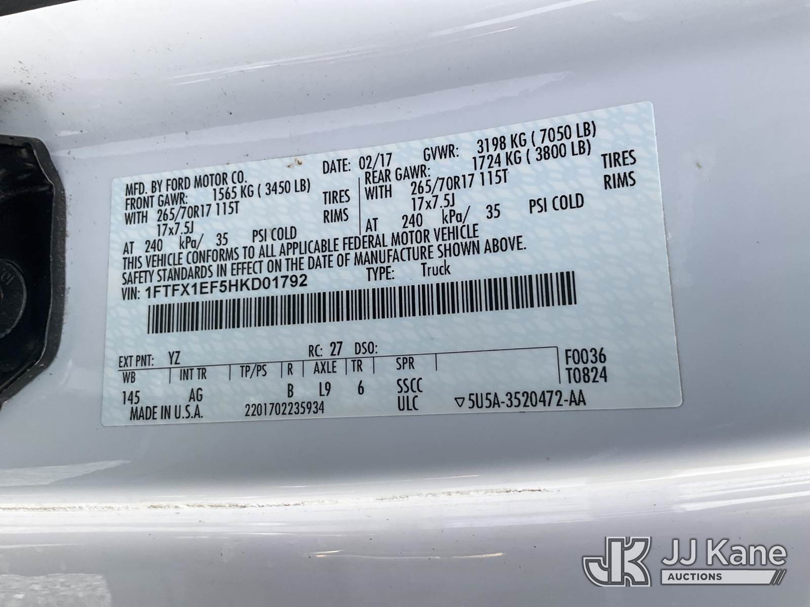 2017 Ford F150 4x4 Extended-Cab Pickup Truck, 8-cyl gas, Auto, A/C, with bed cover, (72,241 miles) (Duke Unit) (Runs & Moves) This is a Titled Item NOTE: This unit is being sold AS IS/WHERE IS via Timed Auction and is located in Verona, KY. Inspection & preview days for this unit are the 2 business days prior to the first day of items closing for this auction, item is located at 2841 Verona-Mudlick Rd Ste B Verona, KY 41092 and hours of operations are 8a-4p. For pre-sale questions, please contact Office Staff @ (502) 612-5080. Auctioneer Michael Whitebread / License # 256617. (Buyer is responsible for removal. Assistance by consignor or JJ Kane Auctions is not assured.)