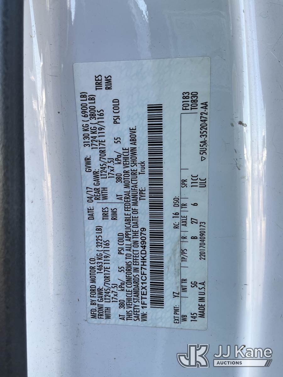 2017 Ford F150 Extended-Cab Pickup Truck, 5.0L V8 gas, RWD, 6-Speed Automatic, A/C, with bed cover, (139,110 miles) (Runs & Moves) (Jump To Start) (Seller States: Oil Leak) (Reads 11,430 hours) This is a Titled Item NOTE: This unit is being sold AS IS/WHERE IS via Timed Auction and is located in South Beloit, IL. Inspection & preview days for this unit are the 2 business days prior to the first day of items closing for this auction, item is located at 14354 Dearborn Ave South Beloit, IL and hours of operations are 8a-4p. For pre-sale questions, please contact Derek Eklund at (608) 904-0618 or (derek.eklund@jjkane.com). (Buyer is responsible for removal. Assistance by consignor or JJ Kane Auctions is not assured.)