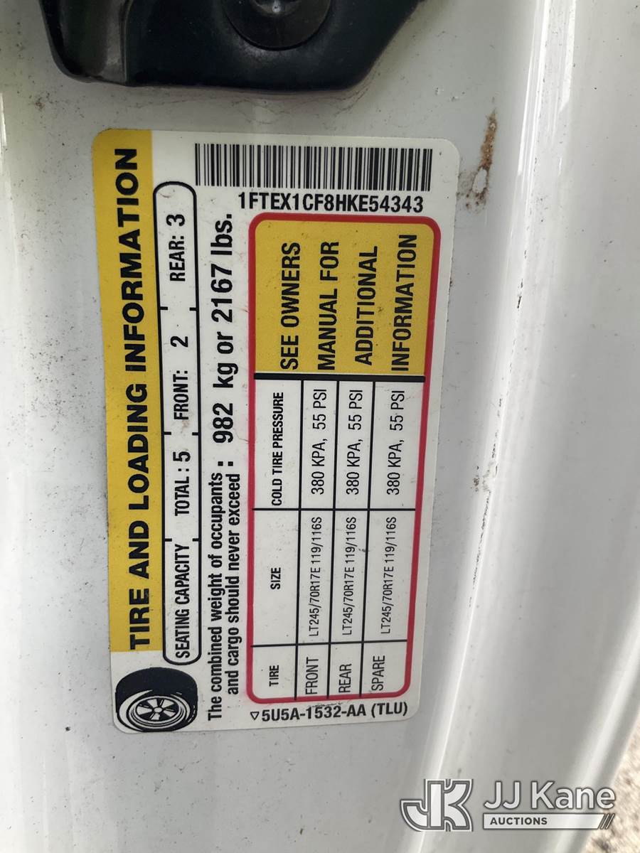 2017 Ford F150 Extended-Cab Pickup Truck, 5.0L V8 gas, RWD, 6-Speed Automatic, A/C, with bed cap & bed slide, (132,872 miles) (Runs & Moves) (Engine Performance Concerns, Dash Warning Indicator On) This is a Titled Item NOTE: This unit is being sold AS IS/WHERE IS via Timed Auction and is located in South Beloit, IL. Inspection & preview days for this unit are the 2 business days prior to the first day of items closing for this auction, item is located at 14354 Dearborn Ave South Beloit, IL and hours of operations are 8a-4p. For pre-sale questions, please contact Derek Eklund at (608) 904-0618 or (derek.eklund@jjkane.com). (Buyer is responsible for removal. Assistance by consignor or JJ Kane Auctions is not assured.)