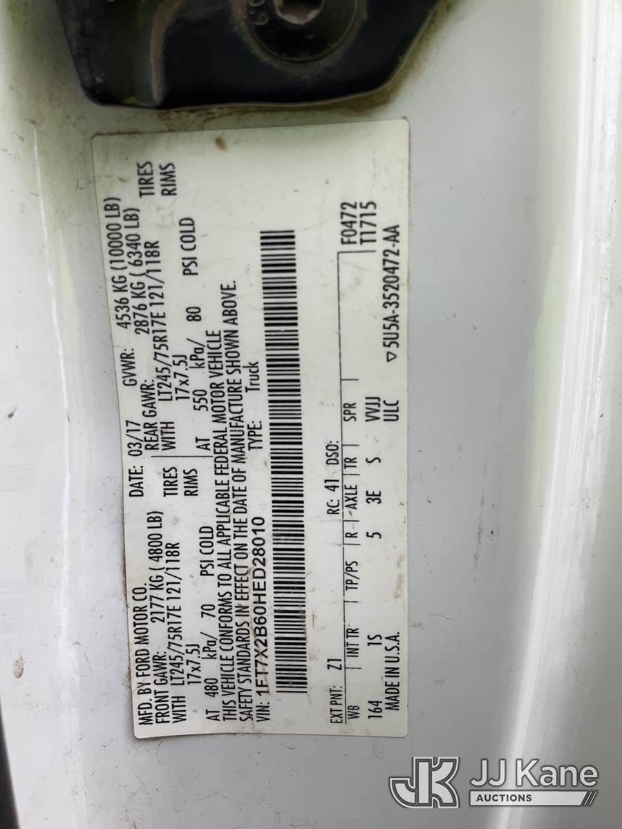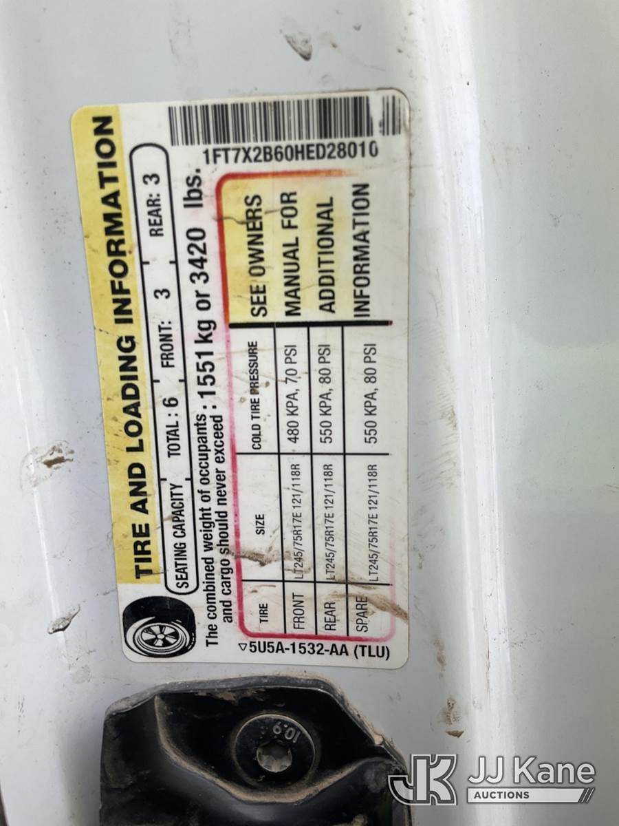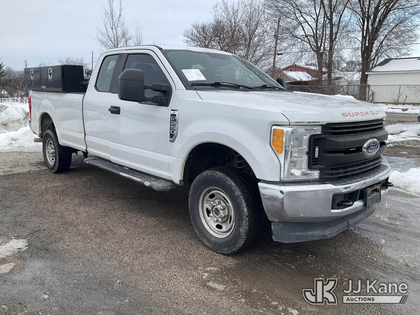 2017 Ford F250 4x4 Extended-Cab Pickup Truck, 6.2L V8 OHV 16V gas, 6-Speed Automatic, A/C, with fuel tank, toolboxes, (248,653 miles) (Runs & Moves, Fuel Tank Operates) (Check Engine Light On, Battery Light On, Door Ajar Light On, Passenger Door Does Not Latch, Chipped Windshield, Paint/Body Damage)(Seller States: Suspension & Emissions Failure) (Reads 15,455 hours) This is a Titled Item NOTE: This unit is being sold AS IS/WHERE IS via Timed Auction and is located in South Beloit, IL. Inspection & preview days for this unit are the 2 business days prior to the first day of items closing for this auction, item is located at 14354 Dearborn Ave South Beloit, IL and hours of operations are 8a-4p. For pre-sale questions, please contact Derek Eklund at (608) 904-0618 or (derek.eklund@jjkane.com). (Buyer is responsible for removal. Assistance by consignor or JJ Kane Auctions is not assured.)