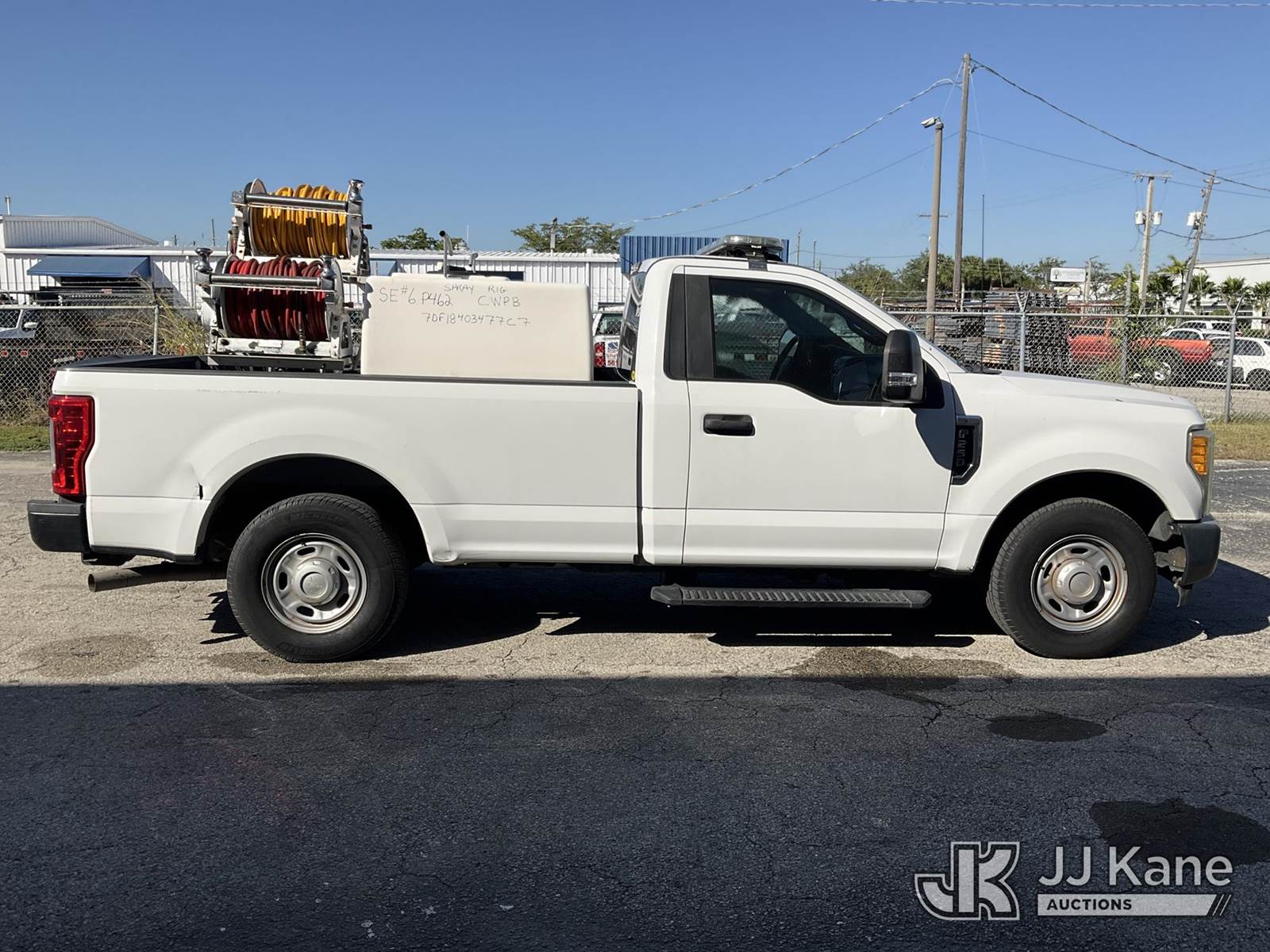 2017 Ford F250 Pickup Truck, 8-cyl, Auto, Gas, A/C, with spray rig, (26,040 miles) (Runs & Moves) (Check Engine Light On, Body Damage) (FL Residents Purchasing Titled Items - tax, title & registration fees will be collected at the maximum rate of $400.00 under 25,999 and $800.00 for Over 26,000 and $250.00 trailers - Proof of insurance is mandatory; Out of State Residents Purchasing Title Items - tax will be collected based upon your state rate.) (Reads 6,211 hours) This is a Titled Item NOTE: This unit is being sold AS IS/WHERE IS via Timed Auction and is located in West Palm Beach, FL. For Pick Up & Removal information, please contact: Andy Garcia @ 561-215-0085. Removals require 24-hr Notice by Appointment Only, Buyer/Hauler must present copy of Paid-in-Full JJ Kane Release Form upon arrival. Purchaser acknowledges ALL lots must be removed within 10 business days of Auction, or a towing & storage fee may be incurred. (Buyer is responsible for removal. Assistance by consignor or JJ Kane Auctioneers is not assured.)