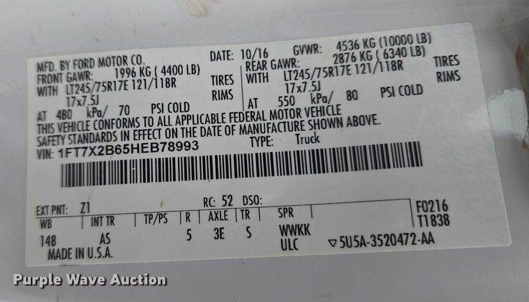 VIN: 1FT7X2B65HEB78993