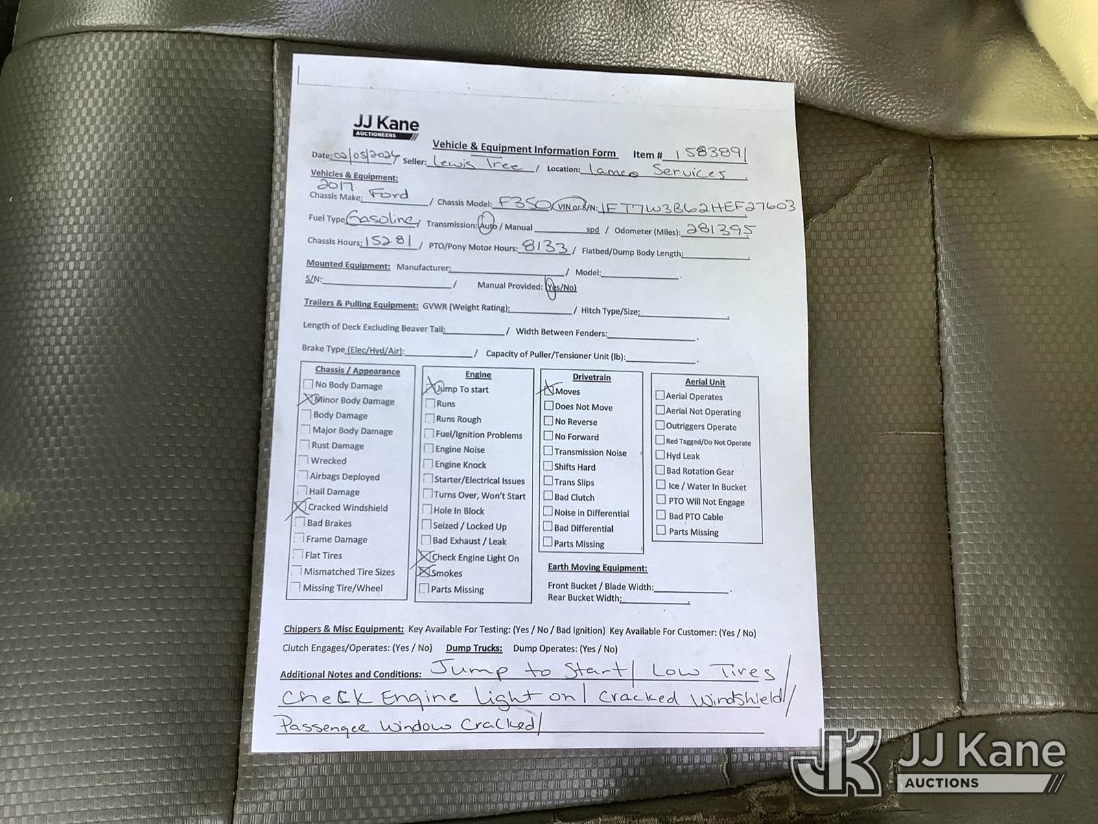 2017 Ford F350 4x4 Crew-Cab Pickup Truck, 6.2L V8 gas, Automatic, A/C, (281,395 miles) (Runs & Moves) (Jump To Start, Check Engine Light On, Smokes, Cracked Windshield, Passenger Window Cracked, Body Damage) This is a Titled Item NOTE: This unit is being sold AS IS/WHERE IS via Timed Auction and is located in Graysville, AL. Inspection & preview days for this unit are by appointment only; please contact us at contact@jjkane.com or 84-Go-JJKane for more details. Alabama Auctioneer Michael Whitebread - License # 5592 (Buyer is responsible for removal. Assistance by consignor or JJ Kane Auctions is not assured.)