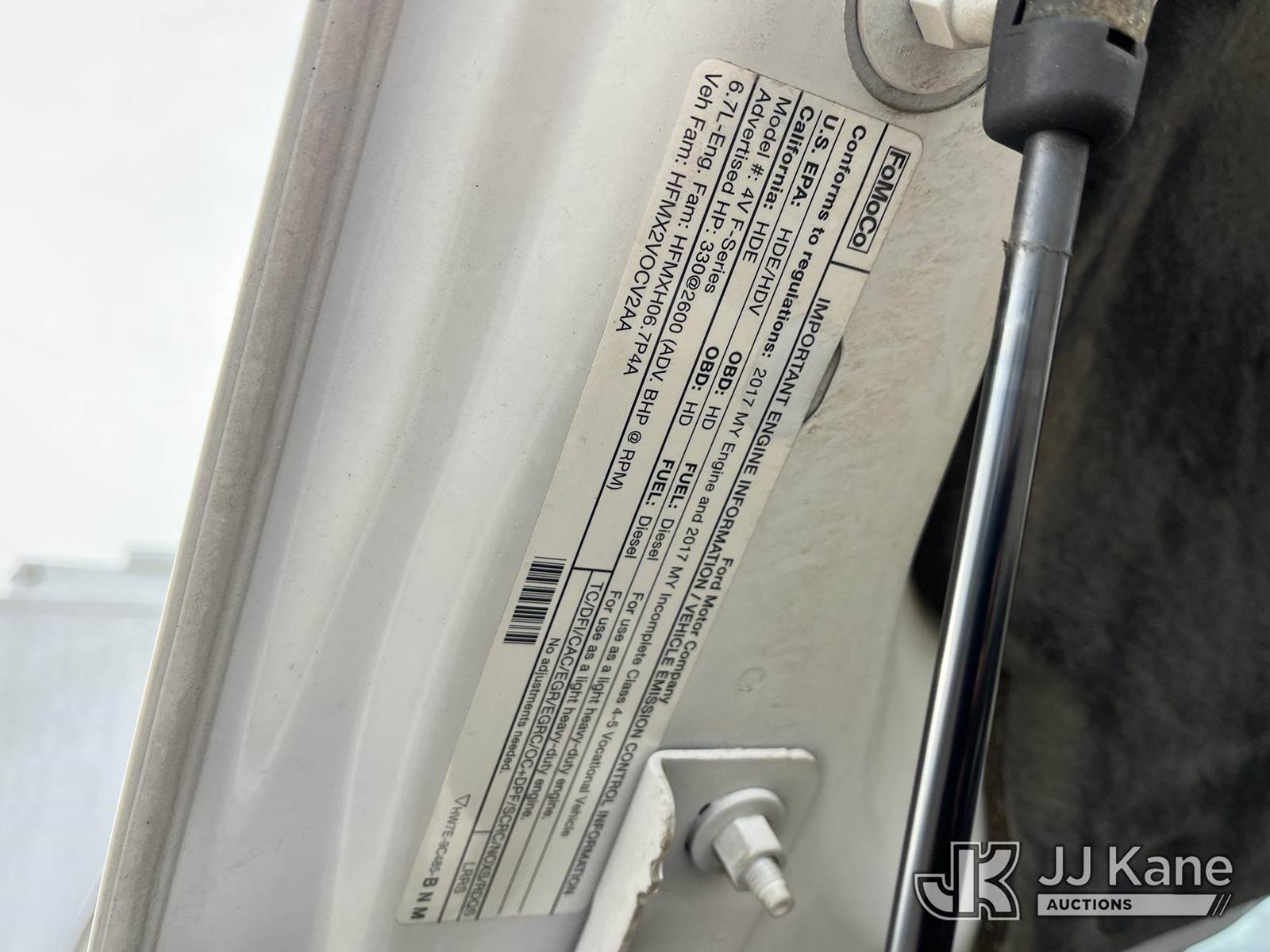 2017 Ford F550 4x4 Air Compressor/Enclosed Utility Truck, 6.7L V8 Diesel, Auto, A/C, with VANAIR 160 GENAIR Air Compressor, (55,467 miles) (Runs & Moves, No Power To PTO, Condition Unknown) This is a Titled Item NOTE: This unit is being sold AS IS/WHERE IS via Timed Auction and is located in Smock, PA. Inspection & preview days for this unit are the 2 business days prior to the first day of items closing for this auction, item is located at 1000 Franklin Dr Smock, PA 15480 and hours of operations are 7:00 am to 3:30 pm. For pre-sale questions, please contact Alaina White @ (724) 562-2575 or Alaina.White@JJKane.com. (Buyer is responsible for removal. Assistance by consignor or JJ Kane Auctions is not assured.)