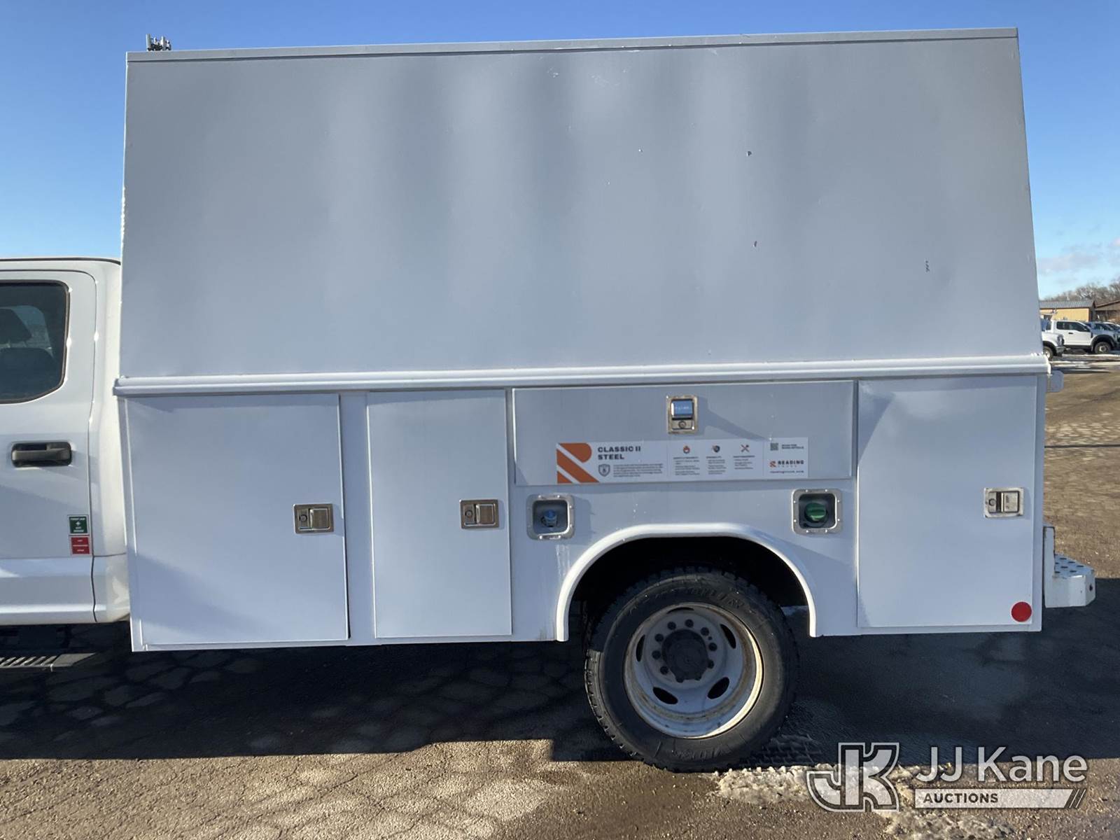 2017 Ford F550 4x4 Crew-Cab Enclosed Service Truck, 6.7L V8 OHV 16V DIESEL, Auto, A/C, (194,052 miles) (Runs & Moves, PTO Engages) (Passenger Seat Unbolted) (Seller States: New/Unused Enclosed Service Body) (Reads 9,409 hours) This is a Titled Item NOTE: This unit is being sold AS IS/WHERE IS via Timed Auction and is located in South Beloit, IL. Inspection & preview days for this unit are the 2 business days prior to the first day of items closing for this auction, item is located at 14354 Dearborn Ave South Beloit, IL and hours of operations are 8a-4p. For pre-sale questions, please contact Derek Eklund at (608) 904-0618 or (derek.eklund@jjkane.com). (Buyer is responsible for removal. Assistance by consignor or JJ Kane Auctions is not assured.)