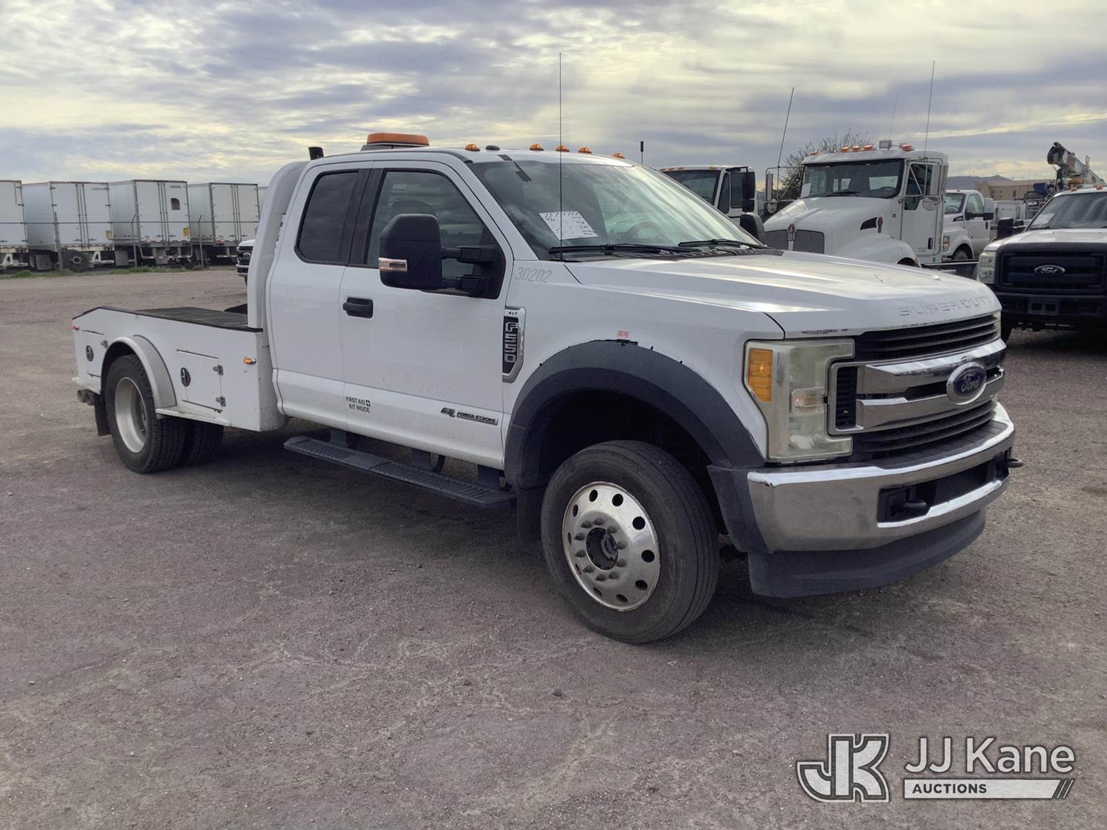 2017 Ford F550 4x4 Extended-Cab Flatbed Truck, 6.7L diesel, Auto, A/C, with headache rack, True Mileage Unknown (Runs & Moves) (Dashboard & Center Console Display Not Operating) This is a Titled Item NOTE: This unit is being sold AS IS/WHERE IS via Timed Auction and is located in Phoenix, AZ. Inspection & preview days for this unit are the 2 business days prior to the first day of items closing for this auction, item is located at 2505 W Durango St Phoenix, AZ 85009 and hours of operations are 8a-4p. For pre-sale questions, please contact Andrew Espinoza @ (602) 393-8107. (Buyer is responsible for removal. Assistance by consignor or JJ Kane Auctions is not assured.)