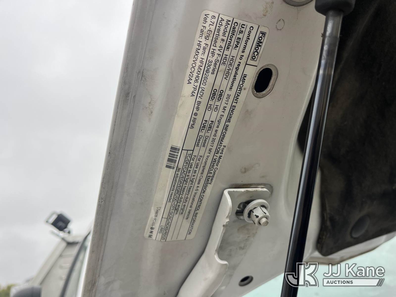 2017 Ford F550 4x4 Regular Cab DRW Flatbed Truck, 6.7L V8 Diesel, Auto, A/C, True Mileage Unknown (Not Running, No Battery, Parts & Pieces Removed, Condition Unknown, Seller States: Needs New Engine) This is a Titled Item NOTE: This unit is being sold AS IS/WHERE IS via Timed Auction and is located in Smock, PA. Inspection & preview days for this unit are the 2 business days prior to the first day of items closing for this auction, item is located at 1000 Franklin Dr Smock, PA 15480 and hours of operations are 7:00 am to 3:30 pm. For pre-sale questions, please contact Alaina White @ (724) 562-2575 or Alaina.White@JJKane.com. (Buyer is responsible for removal. Assistance by consignor or JJ Kane Auctioneers is not assured.)