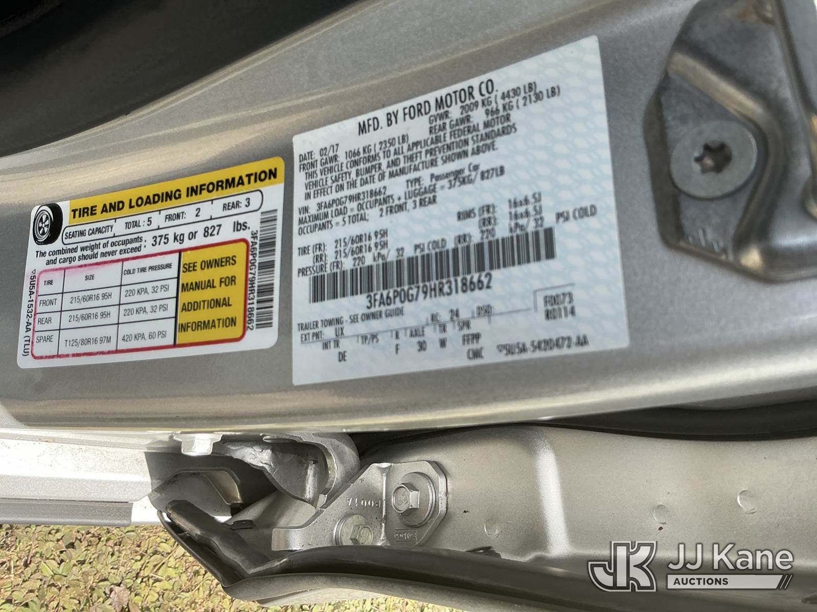 2017 Ford Fusion 4-Door Sedan, 4-cyl gas, Auto, A/C, (78,780 miles) State of FL Unit (Runs & Moves) (Paint/Body Damage) (FL Residents Purchasing Titled Items - tax, title & registration fees will be collected at the maximum rate of $400.00 under 25,999 and $800.00 for Over 26,000 and $250.00 trailers - Proof of insurance is mandatory; Out of State Residents Purchasing Title Items - tax will be collected based upon your state rate.) (Branded Title - Police Vehicle) This is a Titled Item NOTE: This unit is being sold AS IS/WHERE IS via Timed Auction and is located in Thonotosassa, FL. Inspection & preview days for this unit are the 2 business days prior to the first day of items closing for this auction, item is located at 11720 N US 301 Thonotosassa, Fl 33592 and hours of operations are 8a-4p. For pre-sale questions, please contact Office Staff @ (813) 986-2485. (Buyer is responsible for removal. Assistance by consignor or JJ Kane Auctioneers is not assured.)