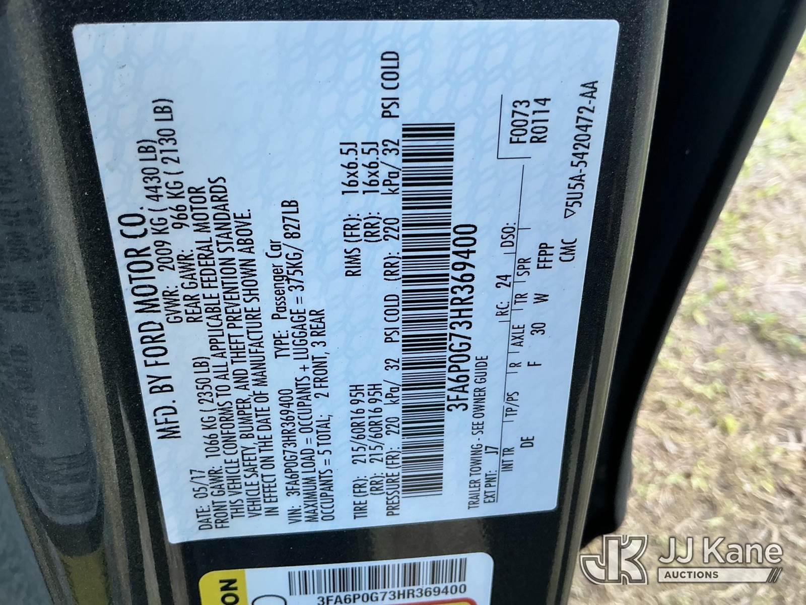 2017 Ford Fusion 4-Door Sedan, 4-cyl gas, Auto, A/C, (53,600 miles) State of FL Unit (Runs & Moves) (Jump To Start)(FL Residents Purchasing Titled Items - tax, title & registration fees will be collected at the maximum rate of $400.00 under 25,999 and $800.00 for Over 26,000 and $250.00 trailers - Proof of insurance is mandatory; Out of State Residents Purchasing Title Items - tax will be collected based upon your state rate.) (Branded Title - Police Vehicle) This is a Titled Item NOTE: This unit is being sold AS IS/WHERE IS via Timed Auction and is located in Thonotosassa, FL. Inspection & preview days for this unit are the 2 business days prior to the first day of items closing for this auction, item is located at 11720 N US 301 Thonotosassa, Fl 33592 and hours of operations are 8a-4p. For pre-sale questions, please contact Office Staff @ (813) 986-2485. (Buyer is responsible for removal. Assistance by consignor or JJ Kane Auctioneers is not assured.)