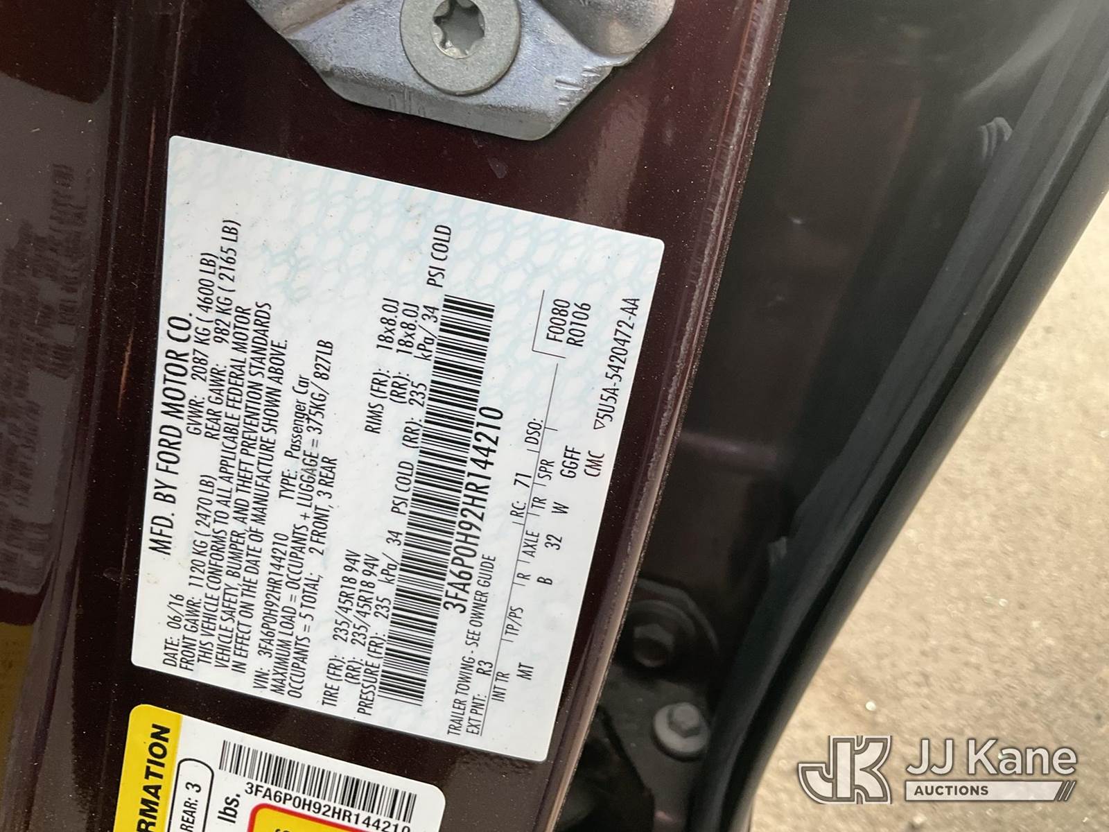 2017 Ford Fusion 4-Door Sedan, 4-cyl gas, 6-Speed Automatic, FWD, (104,667 miles) (Runs & moves ) This is a Titled Item NOTE: This unit is being sold AS IS/WHERE IS via Timed Auction and is located in Jurupa Valley, CA. Inspection & preview days for this unit are the 2 business days prior to the first day of items closing for this auction, item is located at 4510 Muth Way Jurupa Valley, CA 92509 and hours of operations are 8a-4p. For pre-sale questions, please contact please contact Office Staff @ (310) 353-7140. Dealer License Number 45696. (Buyer is responsible for removal. Assistance by consignor or JJ Kane Auctions is not assured.)