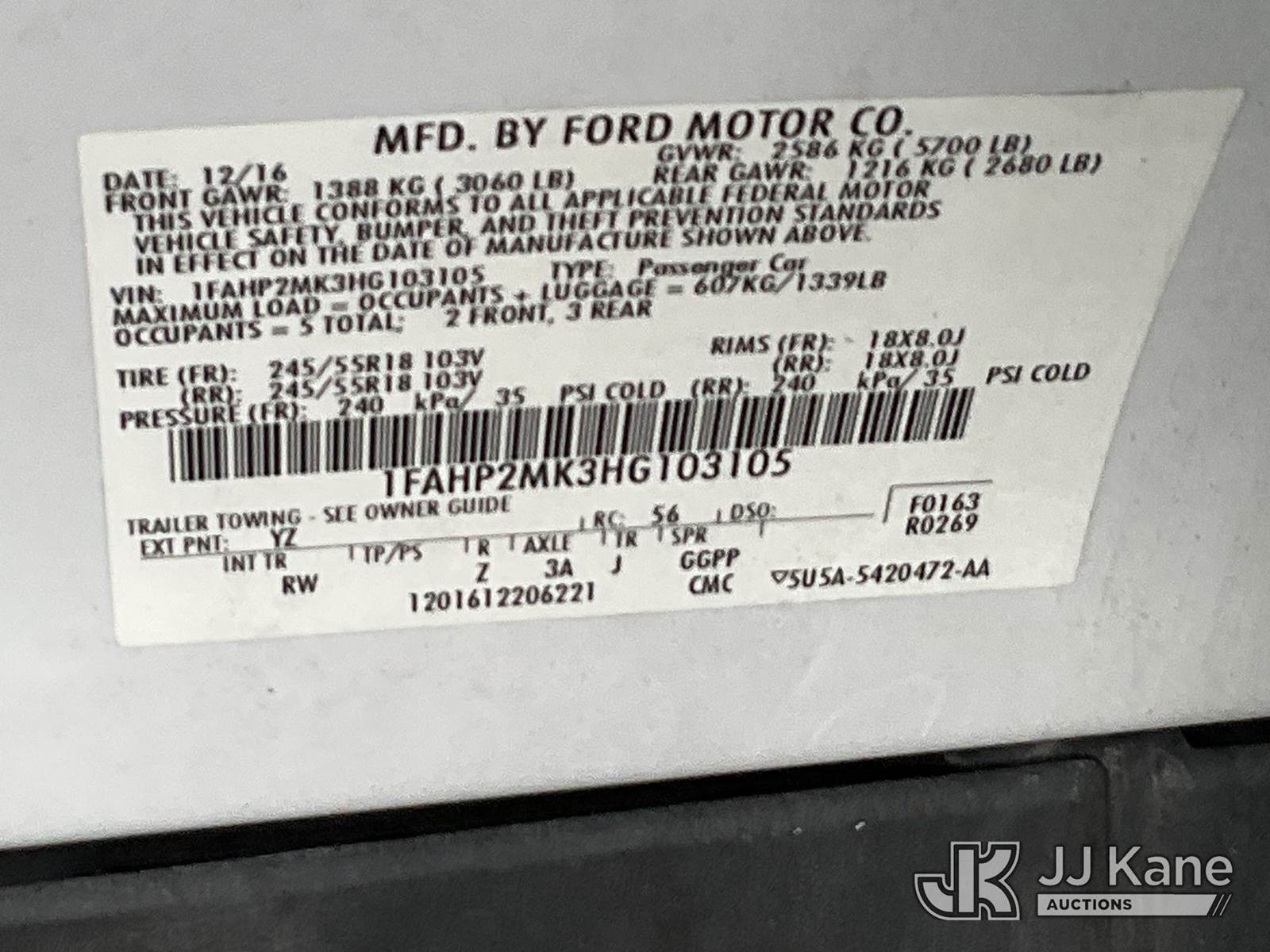 2017 Ford Taurus AWD Interceptor 4-Door Sedan, 6-cyl gas, Auto, A/C, (116,367 miles) (Runs & Moves) This is a Titled Item NOTE: This unit is being sold AS IS/WHERE IS via Timed Auction and is located in Salt Lake City, UT. Inspection & preview days for this unit are the 2 business days prior to the first day of items closing for this auction, item is located at 2353 N Redwood Rd Salt Lake City, UT 84116 and hours of operations are 8a-4p. Titles executed exactly as bidder registered. Ensure your name and/or business name and address in JJ Kane and/or ProxiBid is correct before bidding. For pre-sale questions, please contact Office Staff @ (801) 519-0123. (Buyer is responsible for removal. Assistance by consignor or JJ Kane Auctions is not assured.)