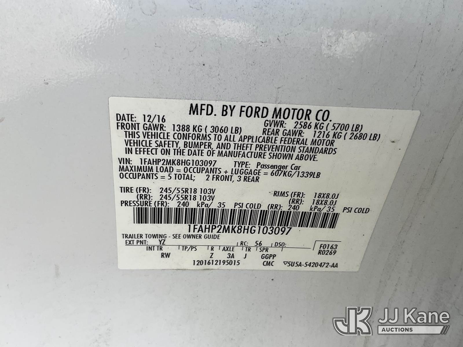 2017 Ford Taurus AWD Interceptor 4-Door Sedan, 6-cyl gas, Auto, A/C, (108,392 miles) (Runs & Moves) This is a Titled Item NOTE: This unit is being sold AS IS/WHERE IS via Timed Auction and is located in Salt Lake City, UT. Inspection & preview days for this unit are the 2 business days prior to the first day of items closing for this auction, item is located at 2353 N Redwood Rd Salt Lake City, UT 84116 and hours of operations are 8a-4p. Titles executed exactly as bidder registered. Ensure your name and/or business name and address in JJ Kane and/or ProxiBid is correct before bidding. For pre-sale questions, please contact Office Staff @ (801) 519-0123. (Buyer is responsible for removal. Assistance by consignor or JJ Kane Auctions is not assured.)