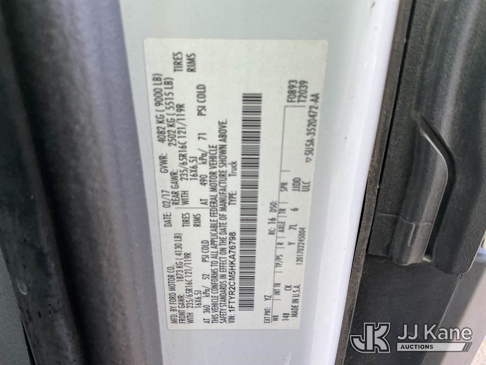 2017 Ford Transit-250 Cargo Van, 6-cyl, Dual Fuel (CNG & Gas), Auto, A/C, (62,775 miles) (Runs & Moves) This is a Titled Item NOTE: This unit is being sold AS IS/WHERE IS via Timed Auction and is located in China Grove, NC. Inspection & preview days for this unit are the 2 business days prior to the first day of items closing for this auction, item is located at 820 E NC Hwy 152 China Grove, NC 28023 and hours of operations are 8a-4p. For pre-sale questions, please contact Office Staff @ (704) 674-1113. (Buyer is responsible for removal. Assistance by consignor or JJ Kane Auctions is not assured.)
