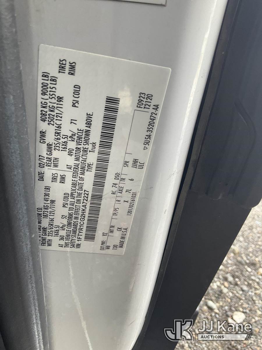 2017 Ford Transit-250 Cargo Van, 3.5L V6 DOHC 24V gas, RWD, 6-Speed Automatic, A/C, (131,816 miles) (Runs & Moves) This is a Titled Item NOTE: This unit is being sold AS IS/WHERE IS via Timed Auction and is located in Tacoma, WA. Inspection & preview days for this unit are by appointment only; please contact us at contact@jjkane.com or 84-Go-JJKane for more details. (Buyer is responsible for removal. Assistance by consignor or JJ Kane Auctions is not assured.)