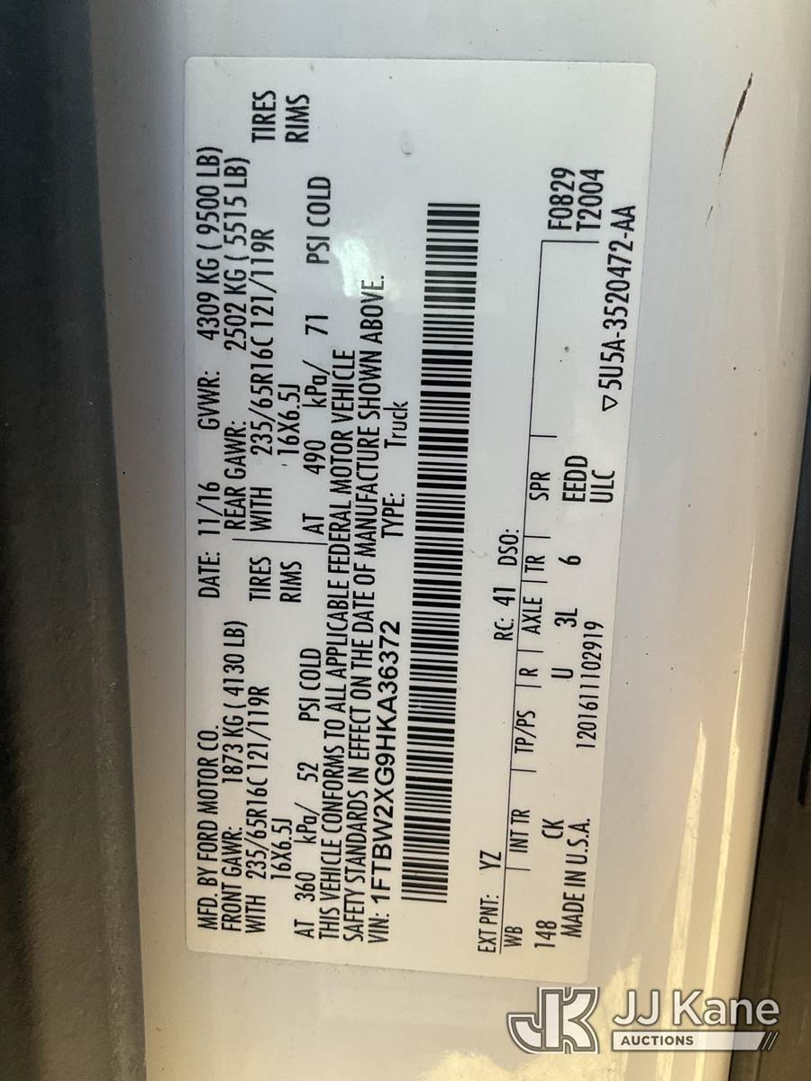 2017 Ford Transit 350 Van High Roof w/Sliding Pass. 148-in Sprinter Cargo Van, 3.5L V6 DOHC 24V Gas, RWD, Auto, A/C, (163,463 miles) (Runs & Moves) (Smoke Coming From Engine Compartment-Condition Unknown) (Reads 8,680 hours) This is a Titled Item NOTE: This unit is being sold AS IS/WHERE IS via Timed Auction and is located in South Beloit, IL. Inspection & preview days for this unit are the 2 business days prior to the first day of items closing for this auction, item is located at 14354 Dearborn Ave South Beloit, IL and hours of operations are 8a-4p. For pre-sale questions, please contact Derek Eklund at (608) 904-0618 or (derek.eklund@jjkane.com). (Buyer is responsible for removal. Assistance by consignor or JJ Kane Auctions is not assured.)