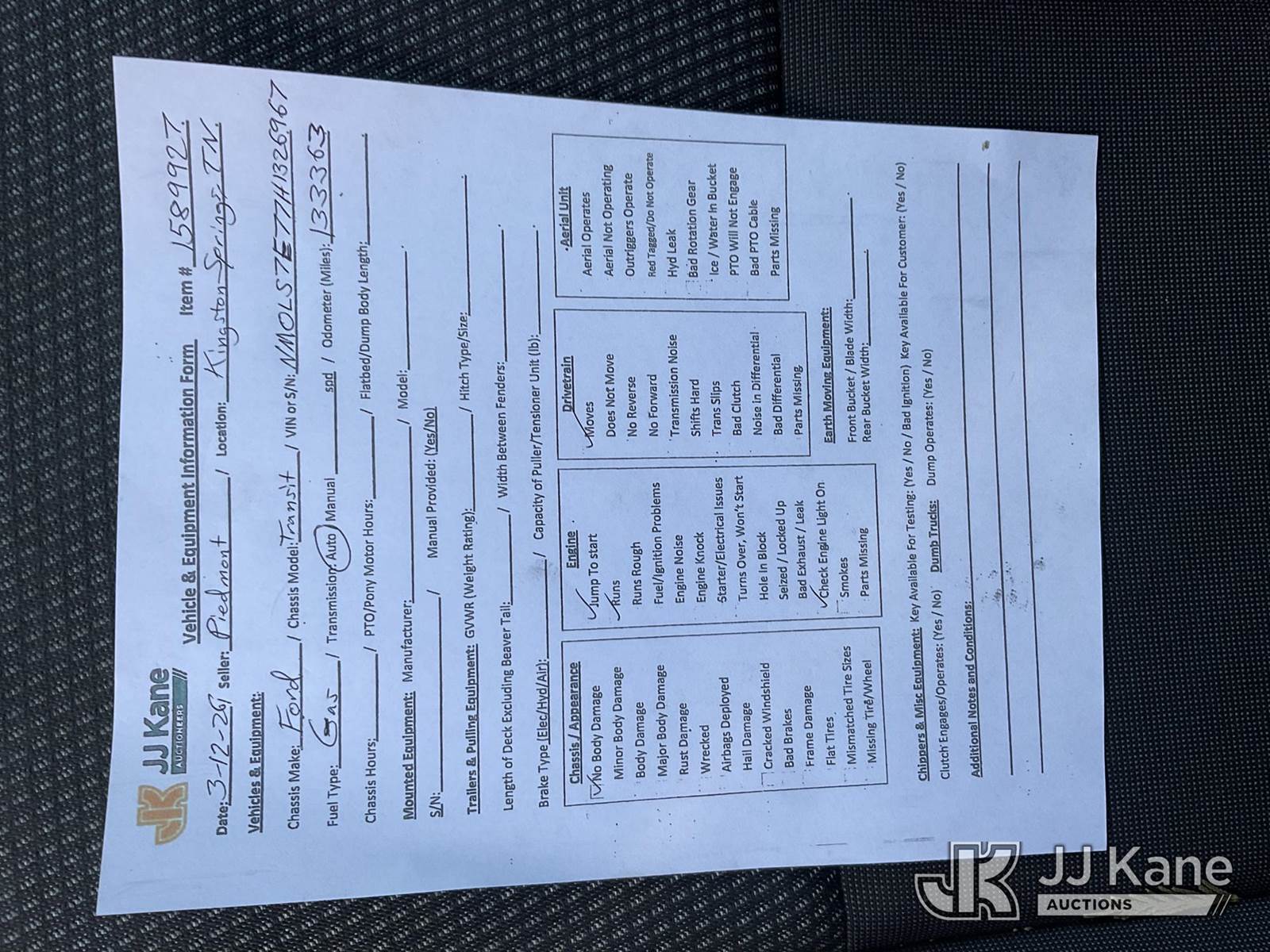 2017 Ford Transit Connect Mini Cargo Van, 2.5L L4 DOHC 16V FWD, CNG Only, Auto, A/C, (133,363 miles) (Runs & Moves) This is a Titled Item NOTE: This unit is being sold AS IS/WHERE IS via Timed Auction and is located in Kingston Springs, TN. Inspection & preview days for this unit are by appointment only; please contact us at contact@jjkane.com or 84-Go-JJKane for more details. (Buyer is responsible for removal. Assistance by consignor or JJ Kane Auctions is not assured.)
