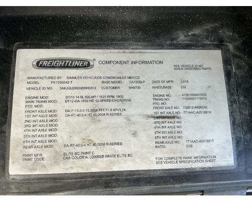2011 Freightliner Cascadia 125 Sleeper Cab For Parts Wired For A Cummins ISX15 EPA10 With A Eaton FRO-16210B Manual Transmission.