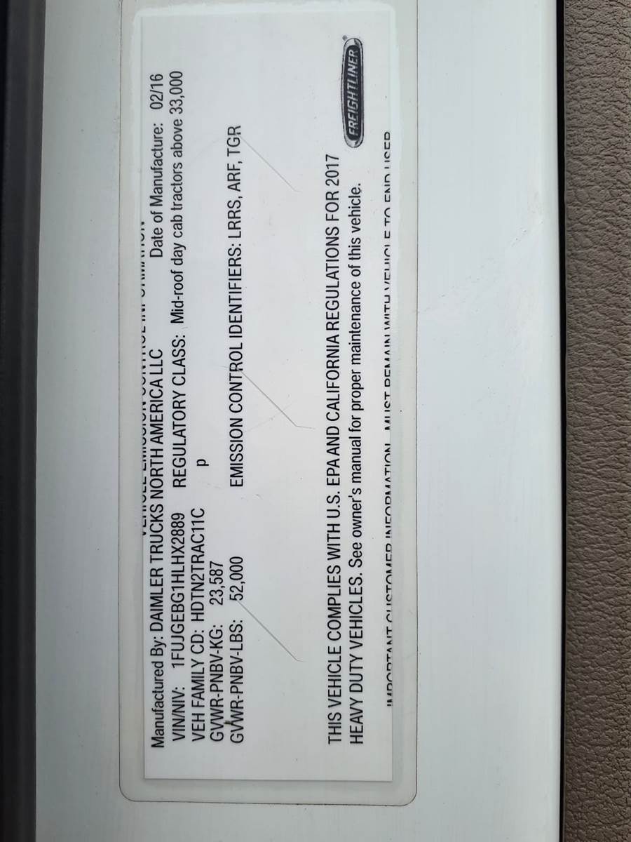 2017 Freightliner Day Cab Truck - 450HP, 10 Speed Automatic