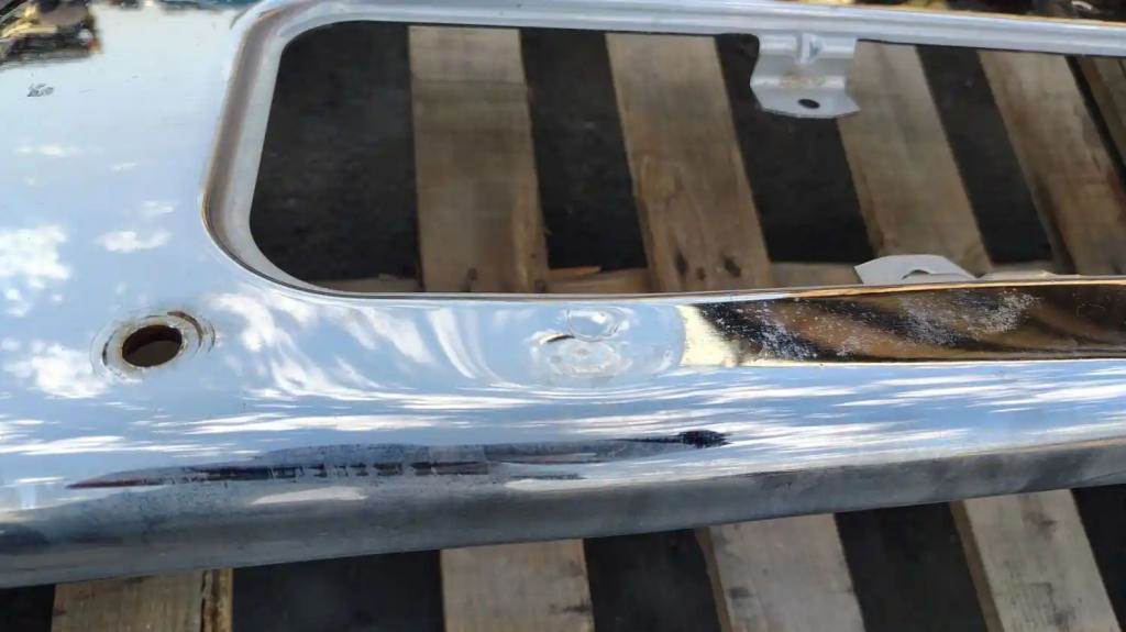 Freightliner Coronado Chrome Plated Steel Bumper, 17"W, P/N A21-26661-001. Has A Few Small Knicks In The Chrome, Small Dent On Upper Center Area