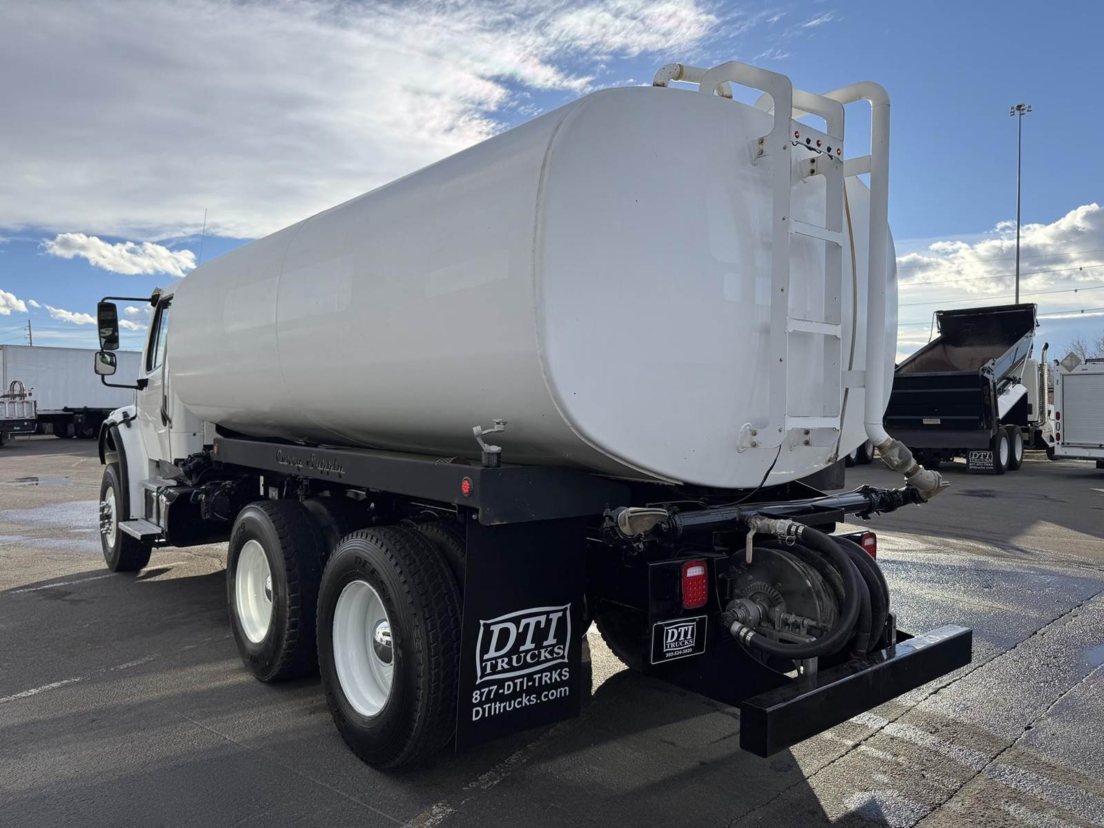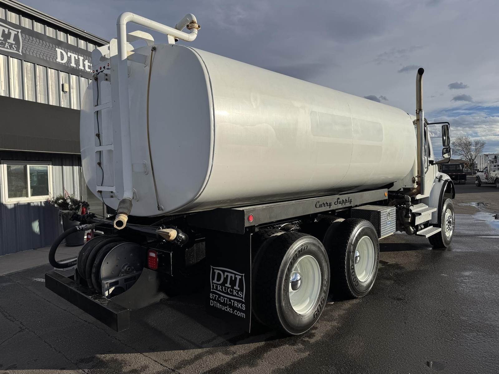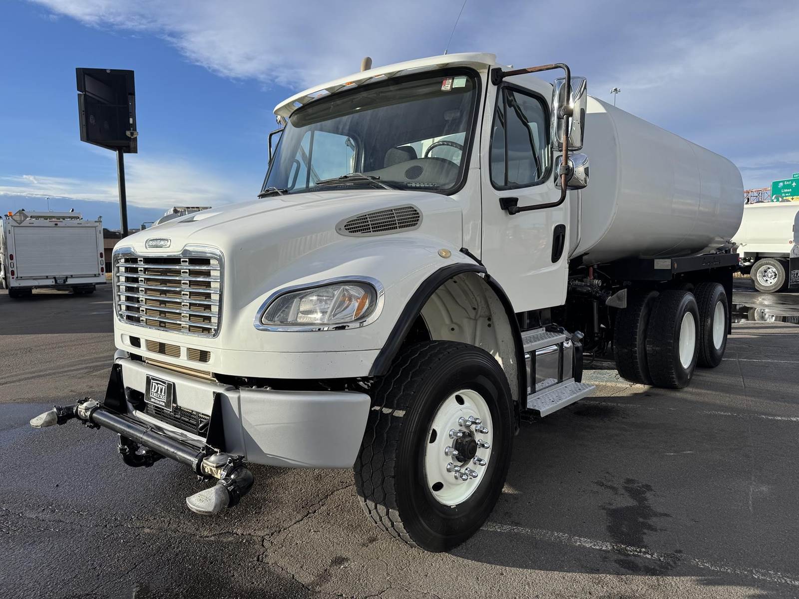 2017 Freightliner M2-106 Tandem Axle 4,000 Gallon Water Truck, 8.9L ISL Cummins Diesel Engine, 300 HP, Engine Brake, Allison 3500 RDS 6 Speed Automatic Transmission, 44,131 ECM Verified Miles & 5,383 ECM Verified Engine Hours, 58K GVWR, 18K Steer Axle, 40K Combined Drive Axles, 4.88 Ratio, DOUBLE FRAME, Power Divider Lock, 186" Wheel Base, 120" CA, TufTrac Suspension, 315/80R22.5 Steer Tires, 11R22.5 Drive Tires All Mounted On Steel Wheels, (1) 50 Gallon Aluminum Diesel Fuel Tank, DPF / DEF / CARB Compliant, Air Ride Cab, Air Conditioning, Tilt / Tele Steering Wheel, Cruise Control, AM / FM Radio, Power Windows & Locks, Air Ride Driver Seat, Curry Supply 4,000 Gallon Water Tank, (5) Air Operated Spray Heads, (1) Manually Operated Spray Head, Rear Mounted Fireman's Hose. This Freightliner 4,000 Gallon Water Truck has Just Arrived At DTI Trucks In Denver, CO. Stock #17954D. Call Or Text Brent For More Information (303) > 598 > 1923