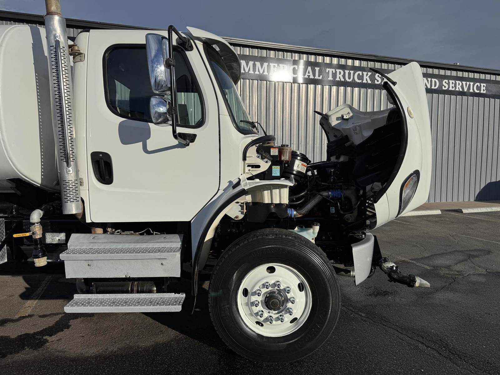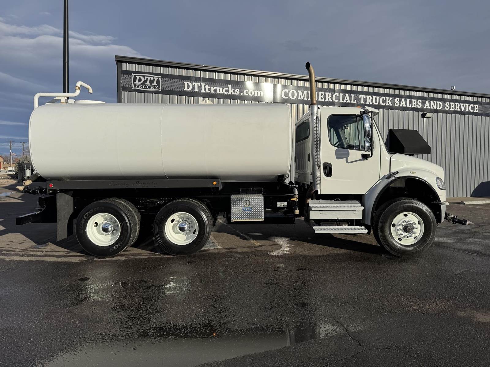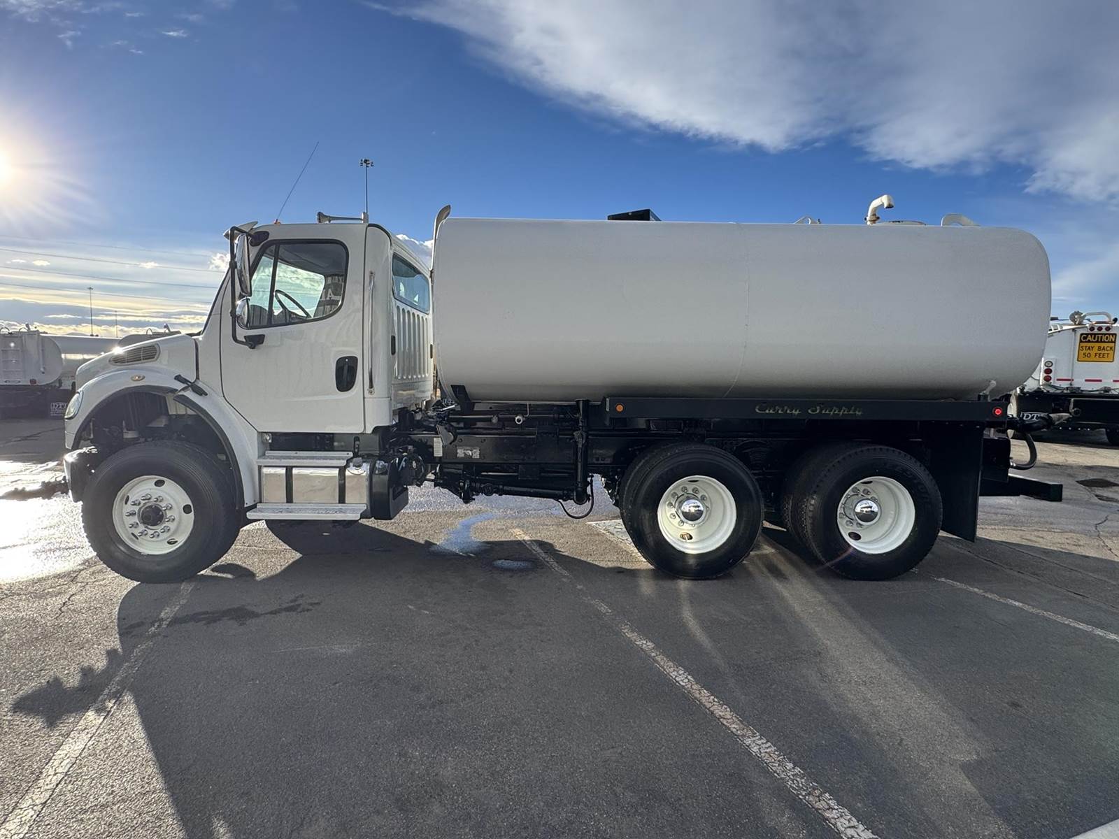 2017 Freightliner M2-106 Tandem Axle 4,000 Gallon Water Truck, 8.9L ISL Cummins Diesel Engine, 300 HP, Engine Brake, Allison 3500 RDS 6 Speed Automatic Transmission, 44,131 ECM Verified Miles & 5,383 ECM Verified Engine Hours, 58K GVWR, 18K Steer Axle, 40K Combined Drive Axles, 4.88 Ratio, DOUBLE FRAME, Power Divider Lock, 186" Wheel Base, 120" CA, TufTrac Suspension, 315/80R22.5 Steer Tires, 11R22.5 Drive Tires All Mounted On Steel Wheels, (1) 50 Gallon Aluminum Diesel Fuel Tank, DPF / DEF / CARB Compliant, Air Ride Cab, Air Conditioning, Tilt / Tele Steering Wheel, Cruise Control, AM / FM Radio, Power Windows & Locks, Air Ride Driver Seat, Curry Supply 4,000 Gallon Water Tank, (5) Air Operated Spray Heads, (1) Manually Operated Spray Head, Rear Mounted Fireman's Hose. This Freightliner 4,000 Gallon Water Truck has Just Arrived At DTI Trucks In Denver, CO. Stock #17954D. Call Or Text Brent For More Information (303) > 598 > 1923
